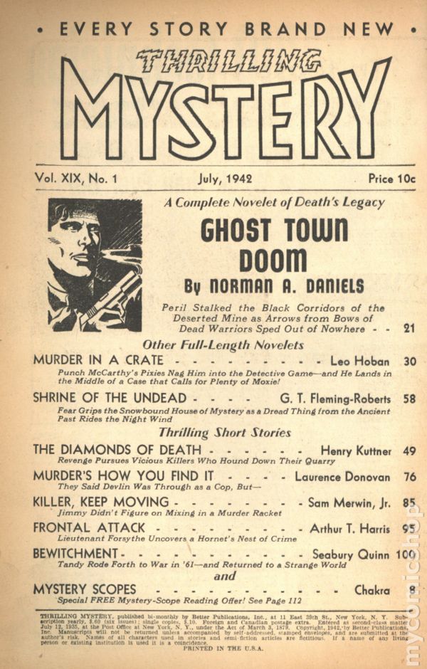 Thrilling Mystery (1935-1947 Standard) Pulp Vol. 19 #1Published Jul 1942 by Better Publications.