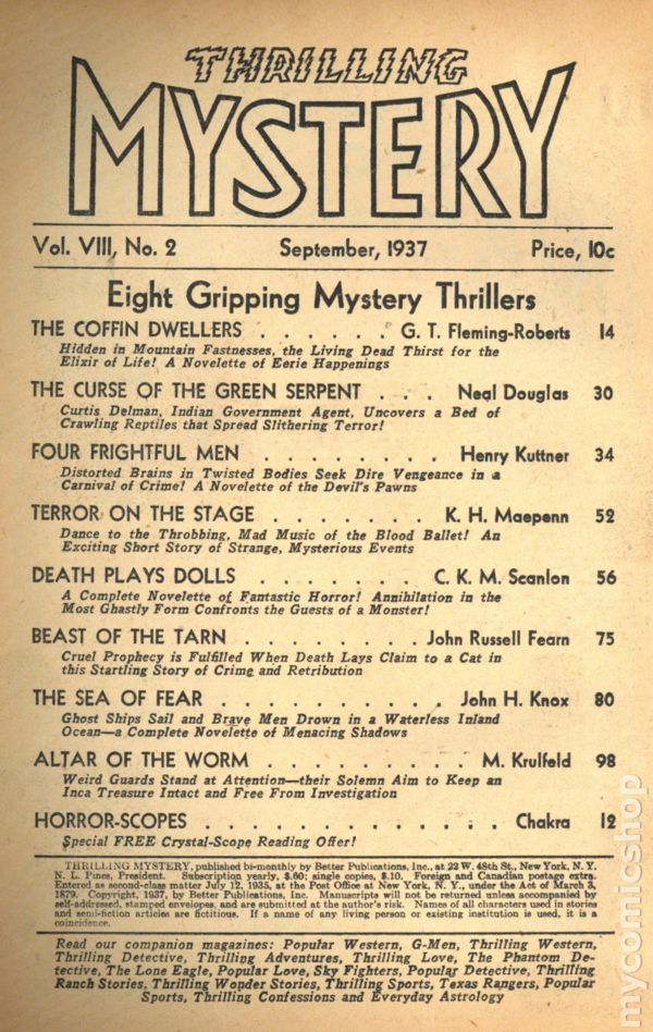 $450 Thrilling Mystery 1941 September. Pulp Clicking on the links to the eBay listings shown above and then making a purchase may result in MyComicShop earning a commission from the eBay Partner Network.