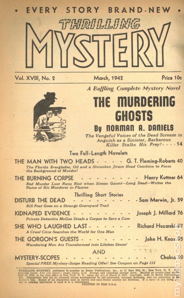 Thrilling Mystery (1935-1947 Standard) Pulp Vol. 18 #2Published Mar 1942 by Better Publications.$120.00