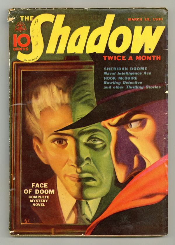 Starts Apr 4 March 15 1938. Cover by Rozen. Stories include "Face of Doom" by Maxwell Grant; "Hook McGuire Bowls with Death" by George Allan Moffatt; "Sweet Sue" by Stephen Gould; "Plain-Clothes Patrol" by Laurence Donovan; and "Photos for a Fed" by Grant Lane plus the columns "Codes" by Henry Lysing and "The Third Degree" by Dean Callahan. Ed Cartier illustrations. 7" x 10", black and white, 128 newsprint pages. Cover price $0.10.