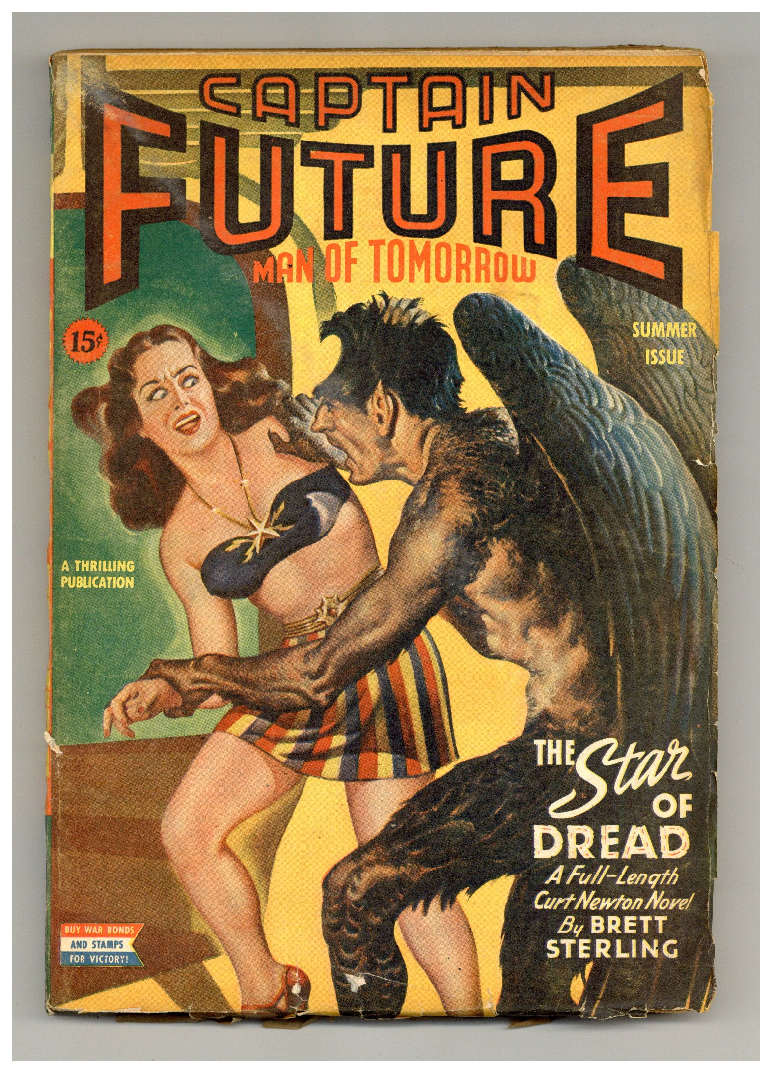 Summer 1943. Cover by Earle K. Bergey. Stories by Brett Sterling ("The Star of Dread"), William Morrison, Jep Powell, and Oscar J. Friend. 6.75-in. x 9.75-in.; black and white; 128 newsprint pages. Cover price $0.15.