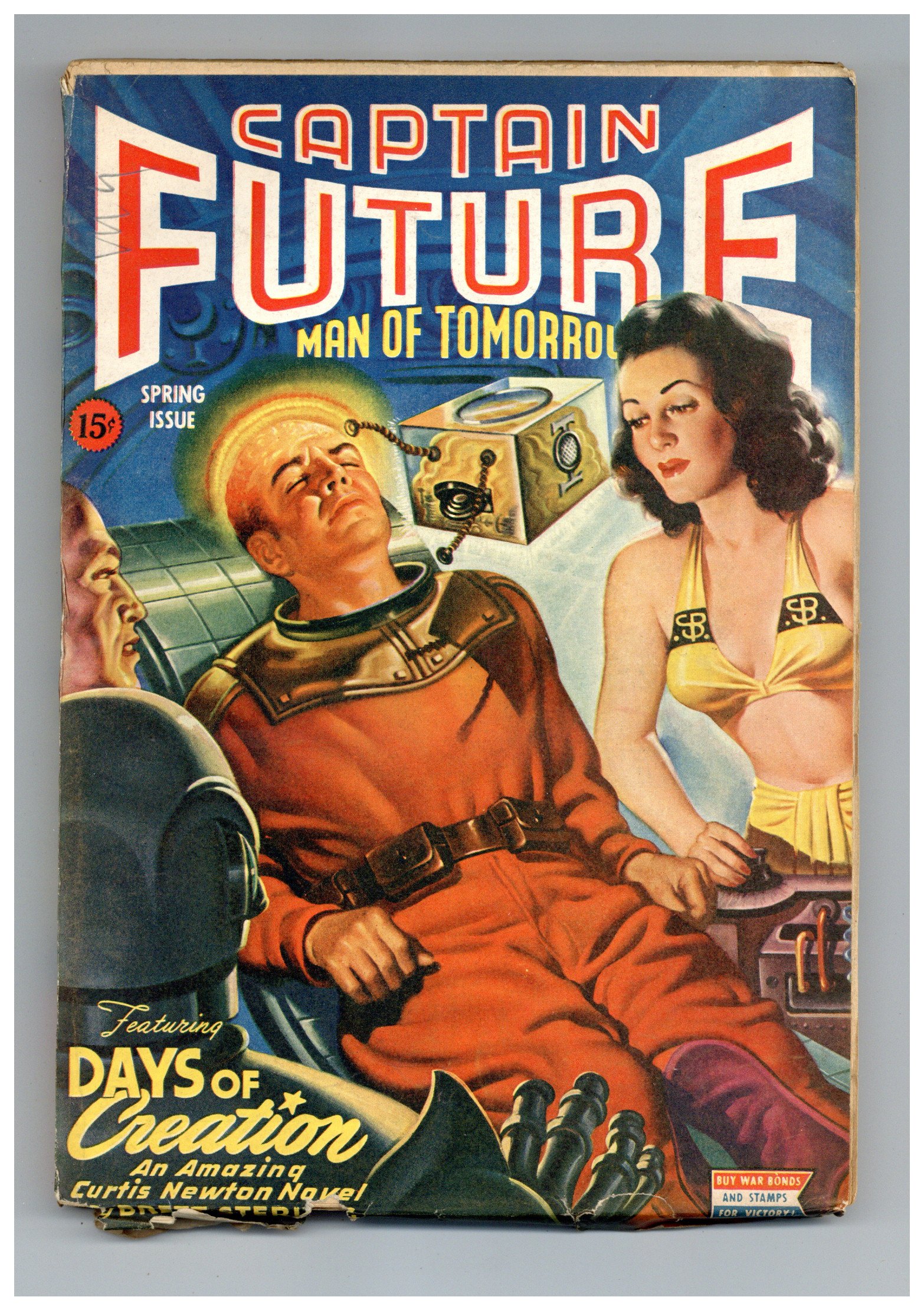 Spring 1944. Final issue. Cover by Earle K. Bergey. Stories by Brett Sterling ("Days of Creation"), Ross Rocklynne, Nathaniel Nitkin, and Fredric Brown ("Nothing Sirius"). Virgil Finlay illustrations. 6.75-in. x 9.75-in.; black and white; 134 newsprint pages. Cover price $0.15.