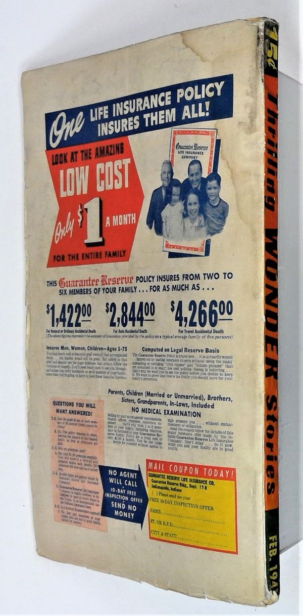 Published Feb 1941 by Beacon Magazines.$54.00- Paper: Light tan to off white