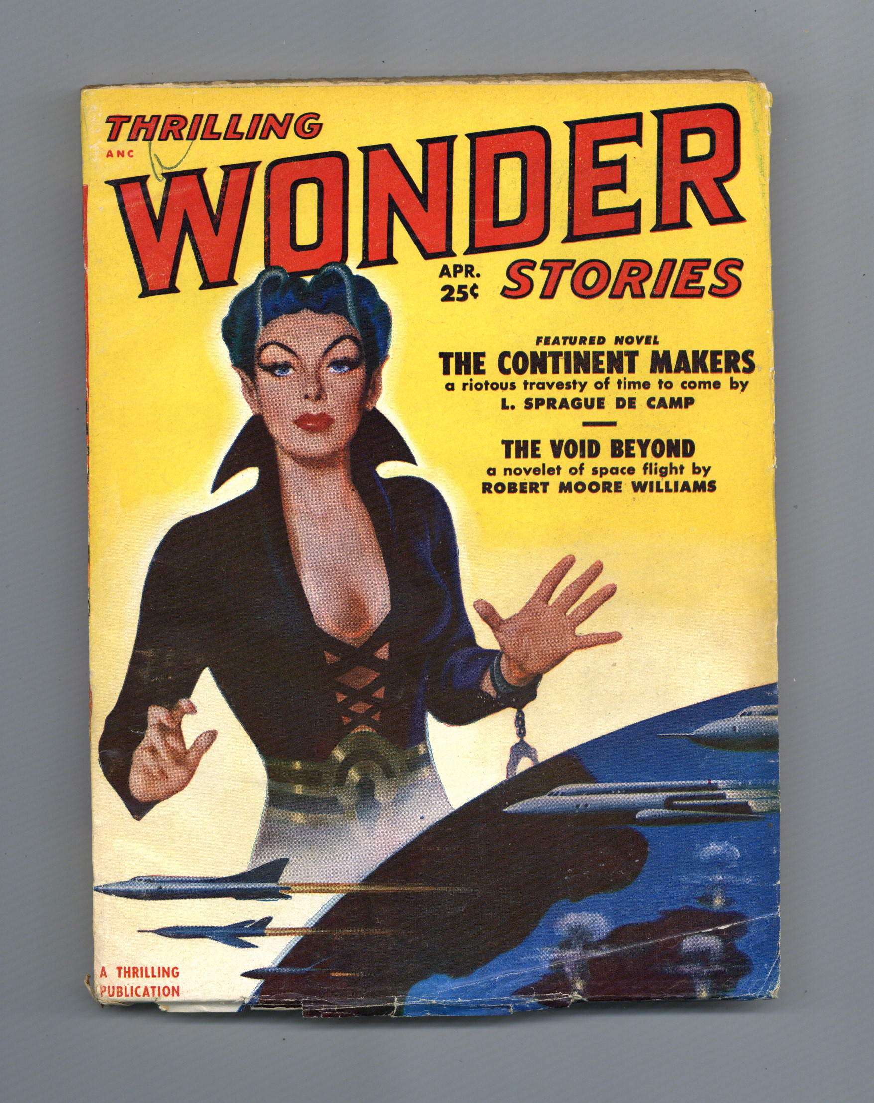 Volume 38, Issue 1 - April, 1951. Stories by L. Sprague de Camp, Robert Moore Williams, Carter Sprague, Margaret St. Clair, Mack Reynolds, Dallas Ross, Raymond Z. Gallun, and Matt Lee. 7-in. x 10-in.; black and white; 166 newsprint pages. Cover price $0.25.