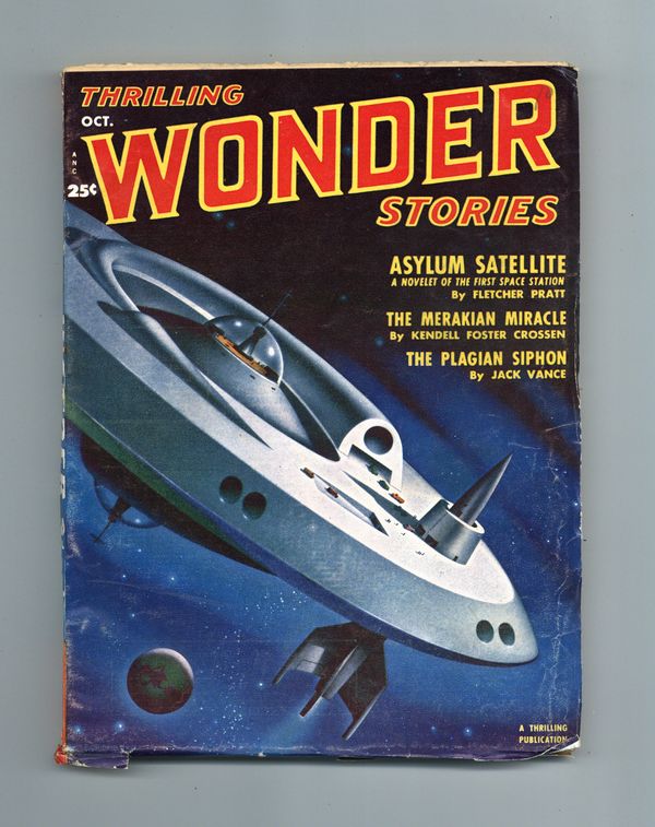 Published Oct 1951 by Beacon Magazines.$4.00Volume 39, Issue 1 - October, 1951. Stories by Fletcher Pratt, Kendell Foster Crossen, Jack Vance, Dallas Ross, Robert Moore Williams, and Richard Matheson. Mini-review of Ray Bradbury's "Illustrated Man." 7-in. x 10-in.; black and white; 150 newsprint pages. Cover price $0.25.