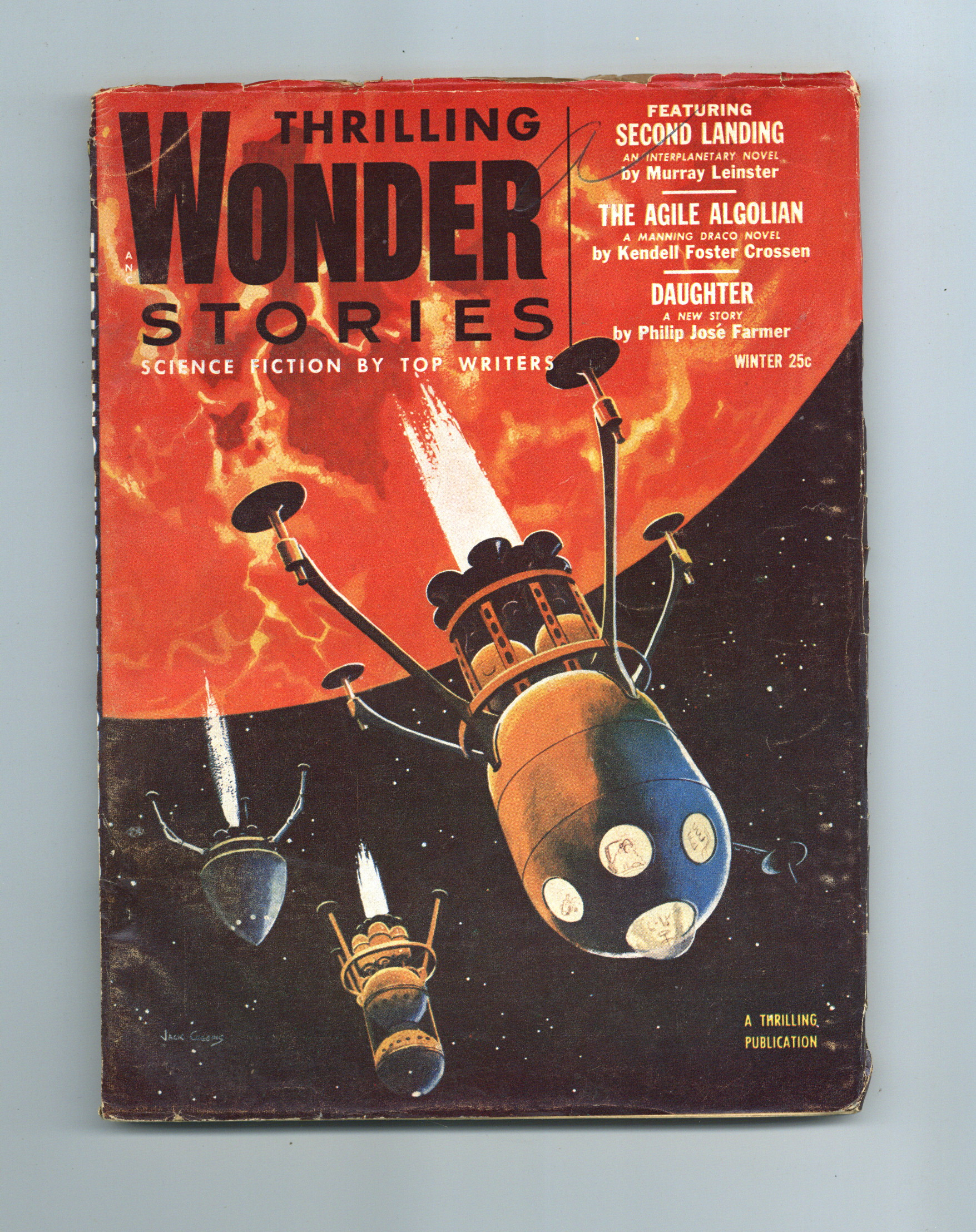 Jan 1954. Cover by Jack Coggins. Stories by Murray Leinster, Kendell Foster Crossen, Philip Jose Farmer, Tom Morrow Jr., Philip K. Dick, Lu Kella, Oliver Saari, and Bill Venable. Three Virgil Finlay illustrations. 7-in. x 10-in.; black and white; 128 newsprint pages. Cover price $0.25.