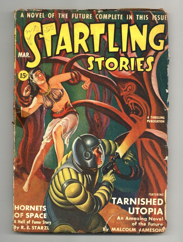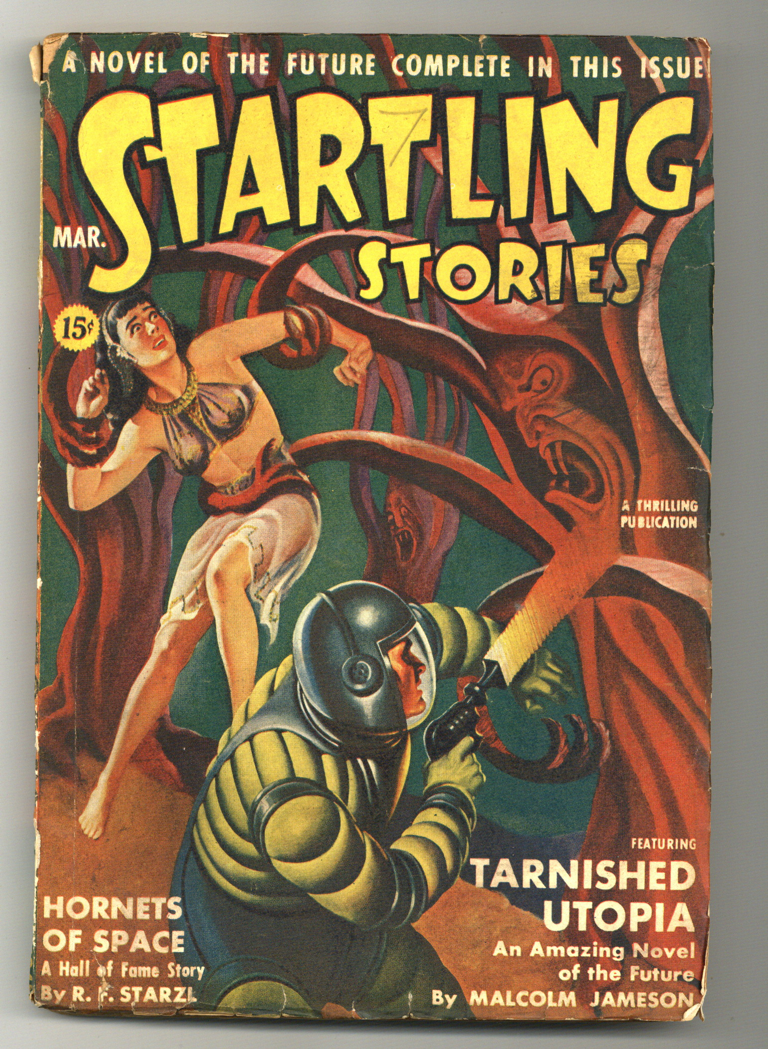 March 1942. Cover by Earle K. Bergey. Stories by R.F. Starzl, Malcolm Jameson, Henry Kuttner, and Joseph J. Millard. 6.75-in. x 9.75-in.; black and white; 132 pages. Cover price $0.15.
