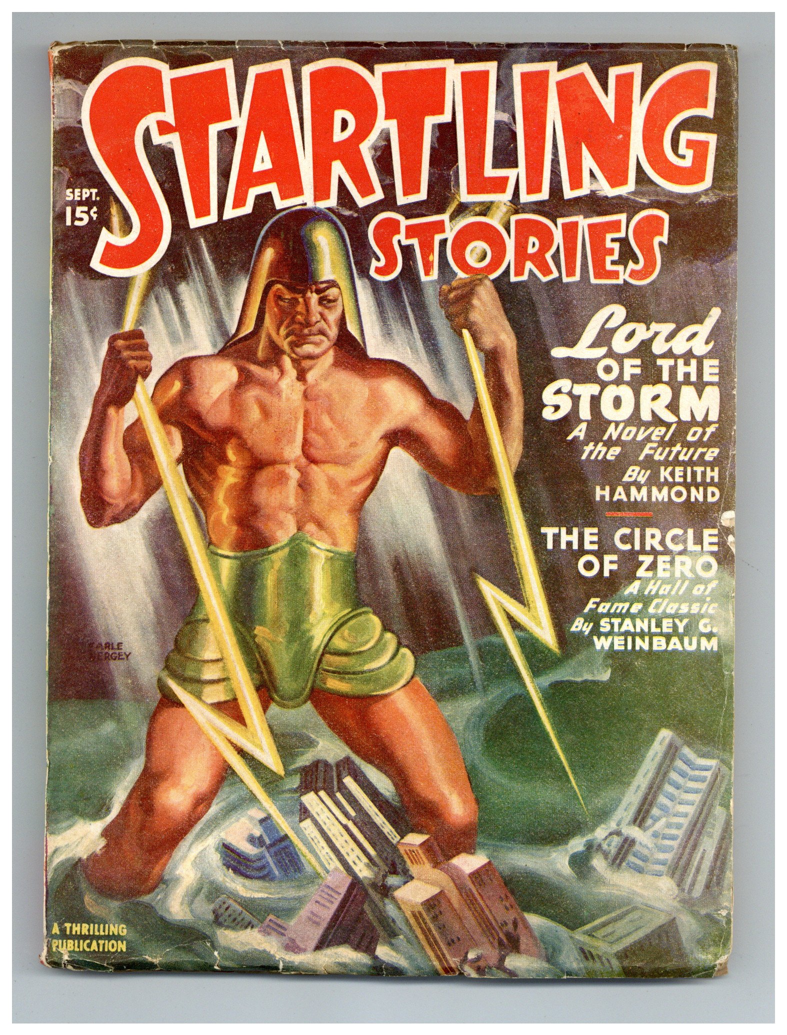 Volume 16, Issue 1 - September, 1947. Cover by Earle K. Bergey. Stories by Keith Hammond, Stanley G. Weinbaum, Carl Jacobi, and Ray Cummings. Five Virgil Finlay illustrations. 6.75-in. x 9.75-in.; black and white; 118 pages. Cover price $0.15.