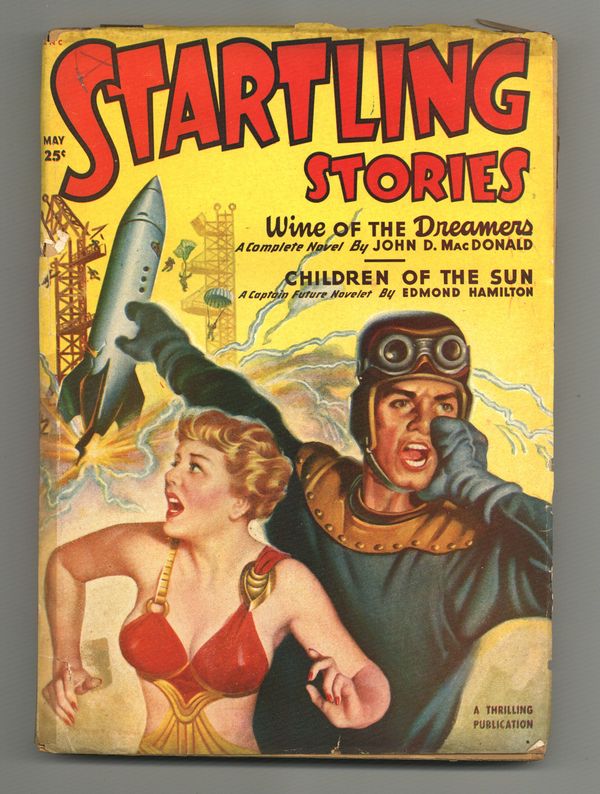 Volume 21, Issue 2 - May, 1950. Stories by John D. MacDonald, Edmond Hamilton (Captain Future story "Children of the Sun", Frederic Arnold Kummer Jr., Fritz Leiber Jr., L. Sprague de Camp, and Carl Jacobi. 6.75-in. x 9.75-in.; black and white; 164 pages. Cover price $0.25.