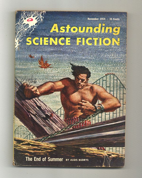 Nov 1954. Volume 54, Issue 3 - 1st printing. Science fiction stories by Algis Budrys, Mark Clifton and Frank Riley ("They'd Rather Be Right" conclusion), William T. Powers, William E. Bentley, Manly Banister, and Irving Reich. Illustrations by Freas, Riley, and van Dongen. Article on human evolution. Cover by Freas. Softcover, 5.5-in. x 7.75-in.; 168 newsprint pages, B&W. Cover price $0.35.