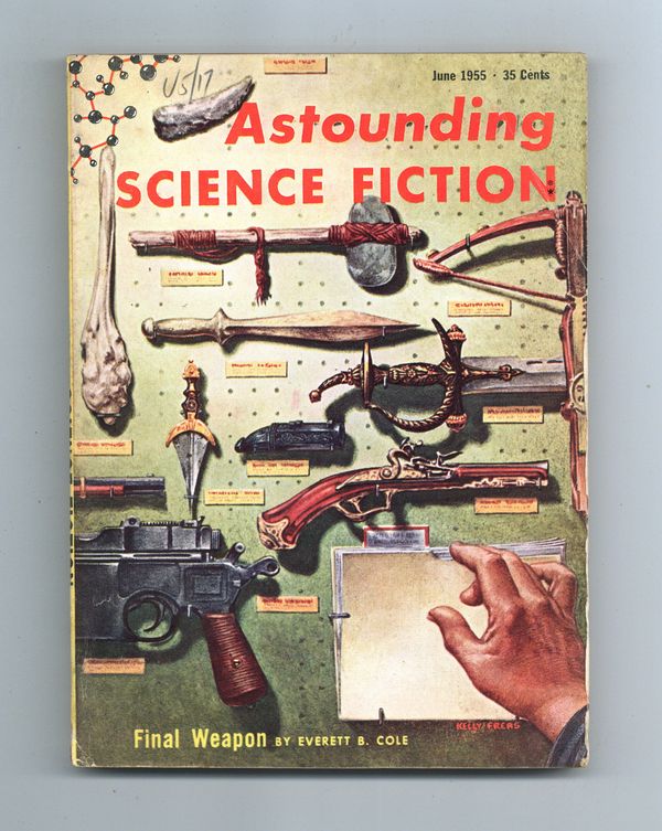 June 1955. Volume 55, Issue 4 - 1st printing. Science fiction stories by Poul Anderson ("The Long Way Home" part 3), Everett B. Cole, E.G. von Wald, Irving Cox Jr., J. Francis McComas, and John O'Keefe. Illustrations by Freas, Leydenfrost, and van Dongen. Article on textbooks by Isaac Asimov. Cover by frank Kelly Freas. Softcover, 5.5-in. x 7.75-in.; 168 newsprint pages, B&W. Cover price $0.35.