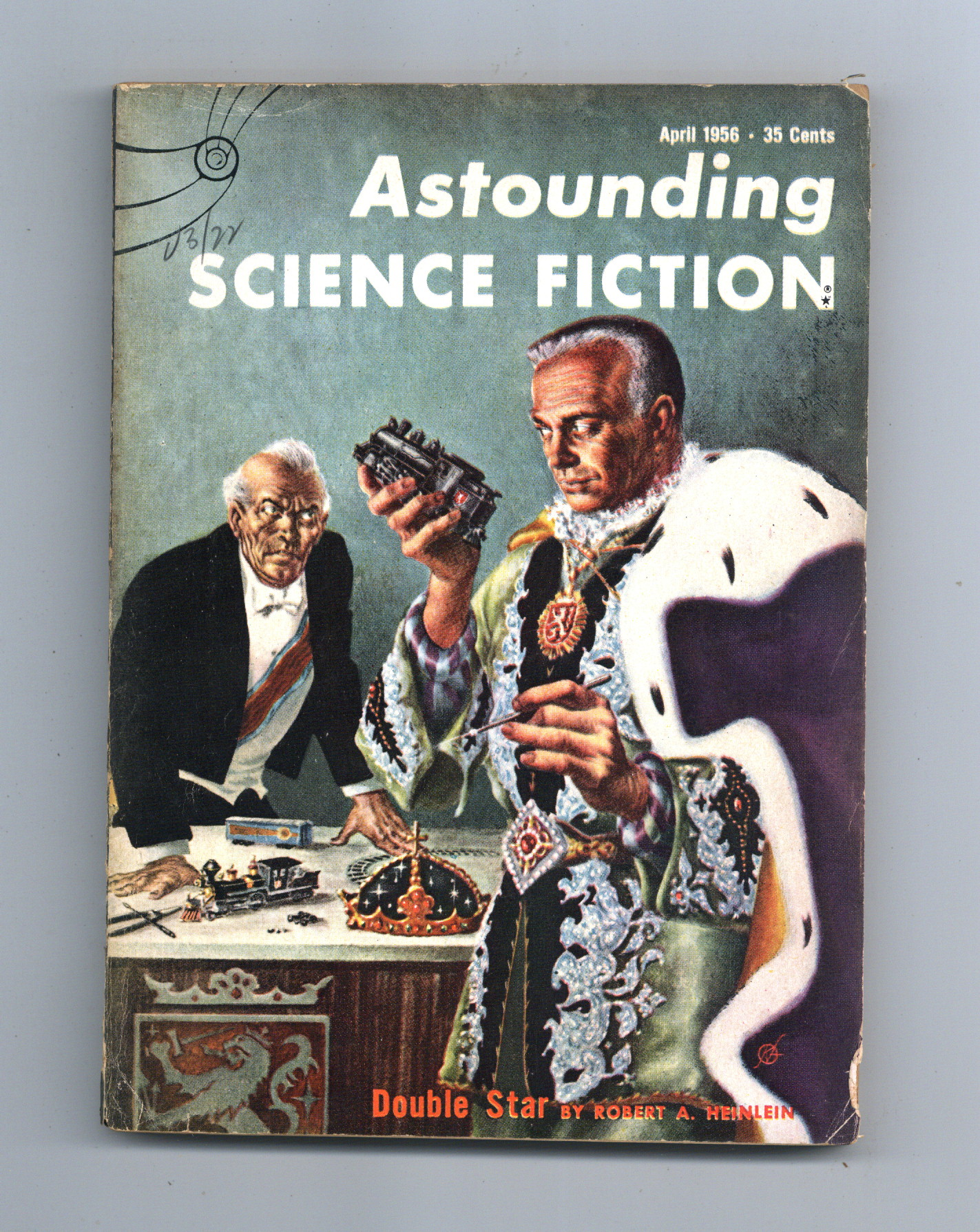 April 1956 - Volume 57, Issue 2 - 1st printing. Science fiction stories: "The Dead Past" by Isaac Asimov, "Legwork" by Eric Frank Russell, "The Man Who Always Knew" by Algis Budrys, "Double Star"(conclusion) by Robert A. Heinlein and "The Curious Profession" by Leonard Lockhard. Illustrations by Freas and Van Dongen. Article on patents. Cover by Frank Kelly Freas. Softcover, 5.5-in. x 7.75-in.; 162 newsprint pages, B&W. Cover price $0.35.