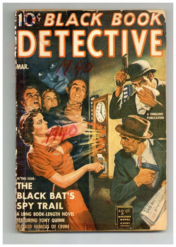 "The Black Bat's Spy Trail" by "G. Wayman Jones" (Norman Daniels); "Murder at his Heels" by Norman A. Daniels; and "Suckers Fly High" by Robert Sidney Bowen. Pulp magazine format; black and white; 112 newsprint pages. Cover price $0.10.