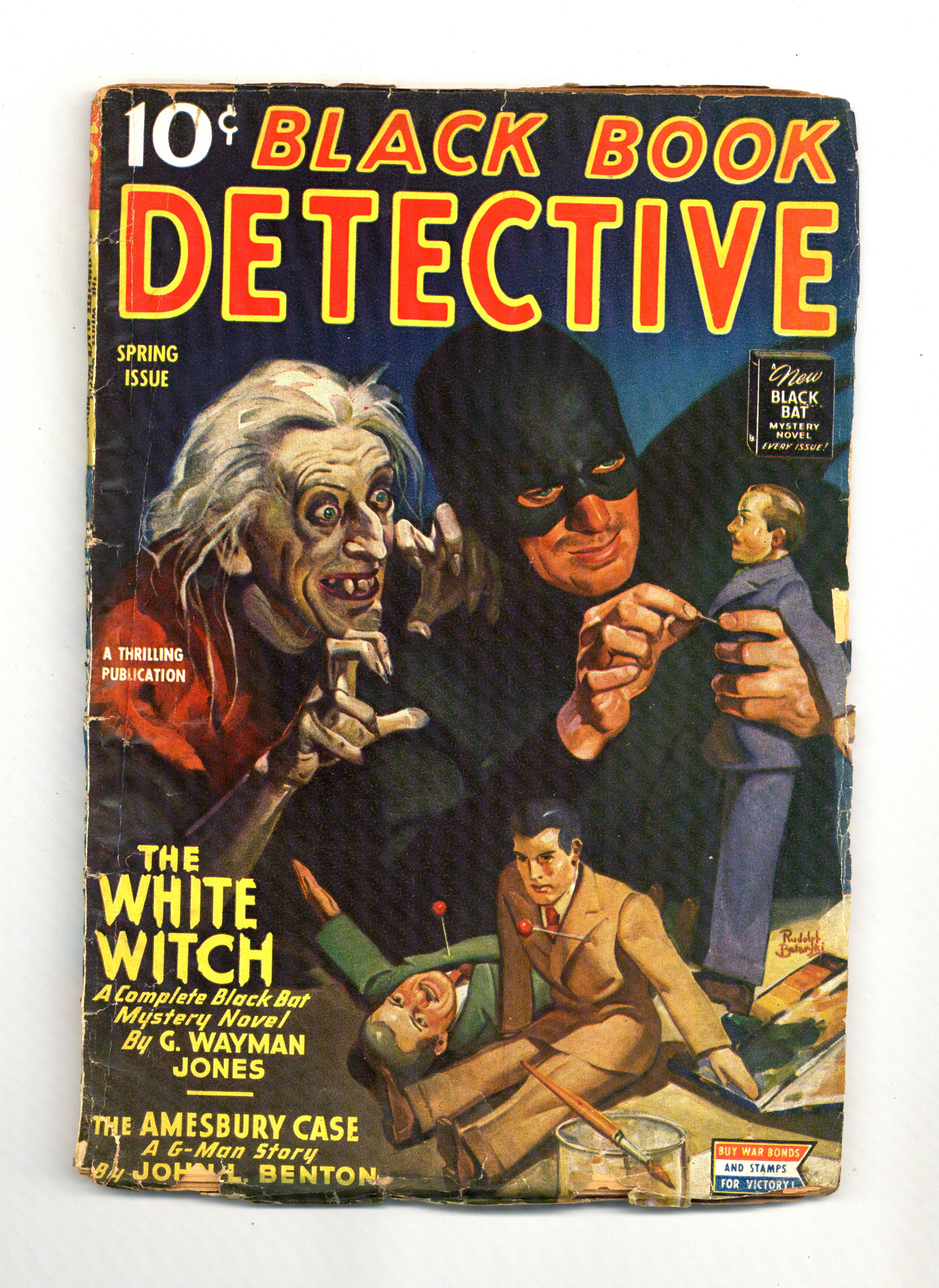 Spring 1944. Cover by Rudolph Belarski. The Black Bat in "The White Witch" by "G. Wayman Jones" (Norman Daniels); "The Amesbury Case" by John L. Benton; and "Spy Aboard" by Frank Johnson. Pulp magazine format; black and white; 80 newsprint pages. Cover price $0.10.