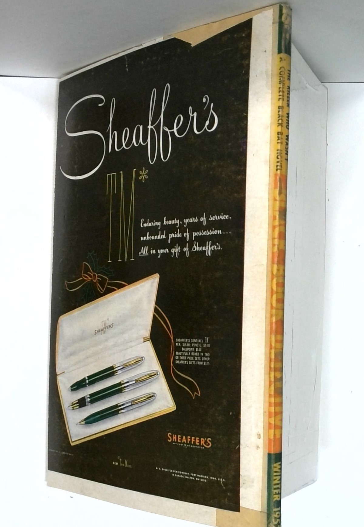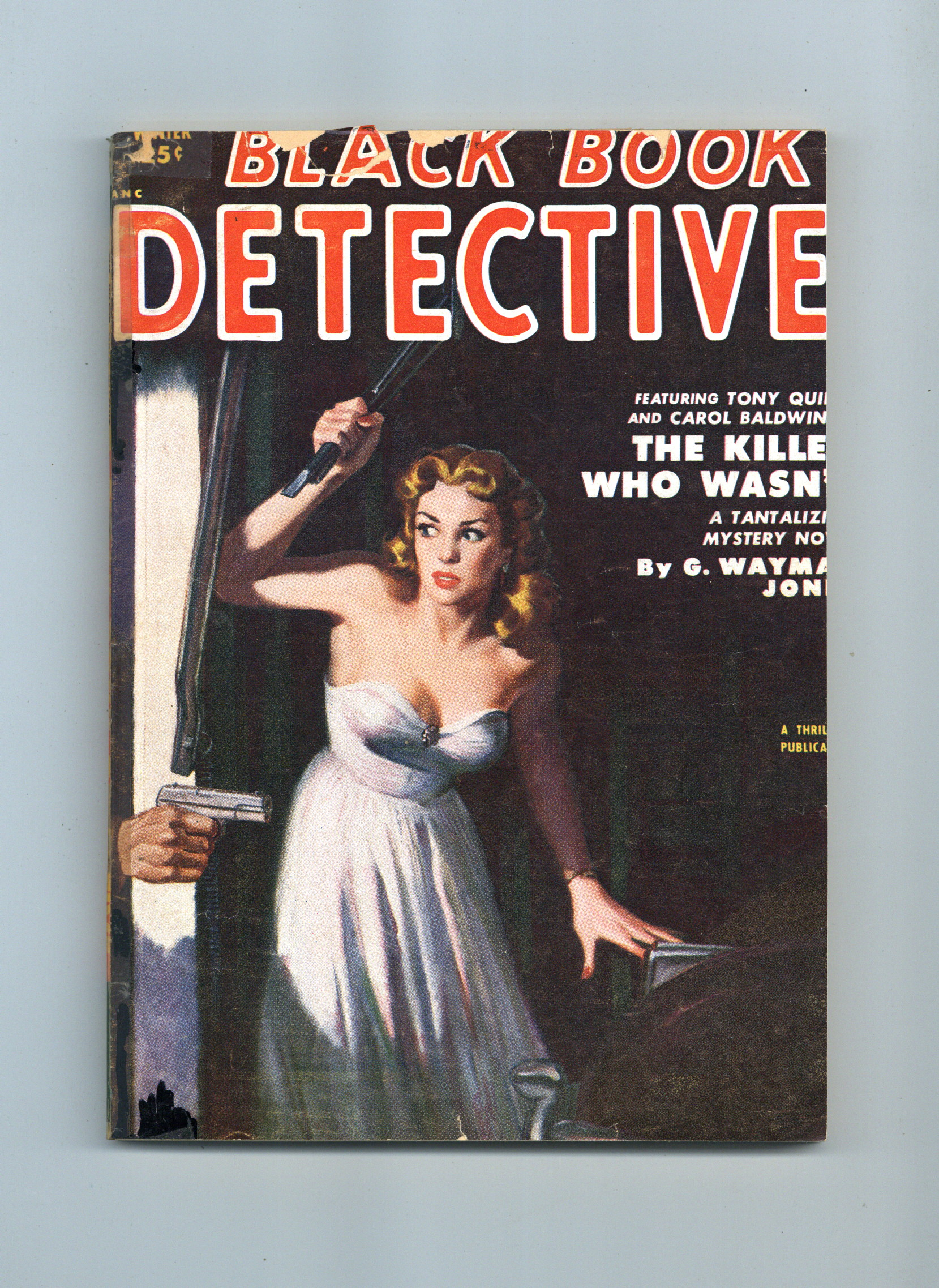 Winter 1952. The Black Bat in "The Killer Who Wasn't" by "G. Wayman Jones" (Norman Daniels); "Or Up a Dark Alley" by W. Lee Herrington; "Thubway Tham's Nithe Old Lady" by Johnston McCulley; "The Man on the Corner" by C.K.M. Scanlon; "A Pawn for the Chair" by Joe Archibald; "The Twisted Three" by G.T. Fleming-Roberts; and "Option on Death" by James Donnelly. Pulp magazine format; black and white; 128 newsprint pages. Cover price $0.25.