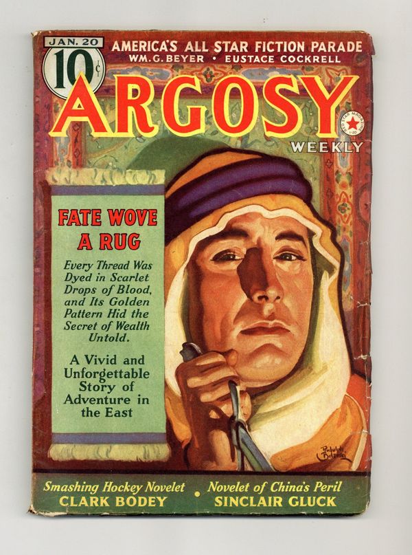 January 20, 1940. Cover by Rudolph Belarski. Stories include "Minions of Mars" (part 2) by William Gray Beyer, "Loot Lies Deep" (part 4) by Eustace L. Adams, "Fate Wove a Rug" (part 1) by C.D. Appleton and E.C. Goodwin, "The Game's on Ice" by Clark Bodey, "Footsteps Invisible" by Robert Arthur, "The Purring Cat" by Sinclair Cluck, "Windward Head" George Masselman". 7-in. x 10-in.; black and white; 128 newsprint pages. Cover price $0.10.
