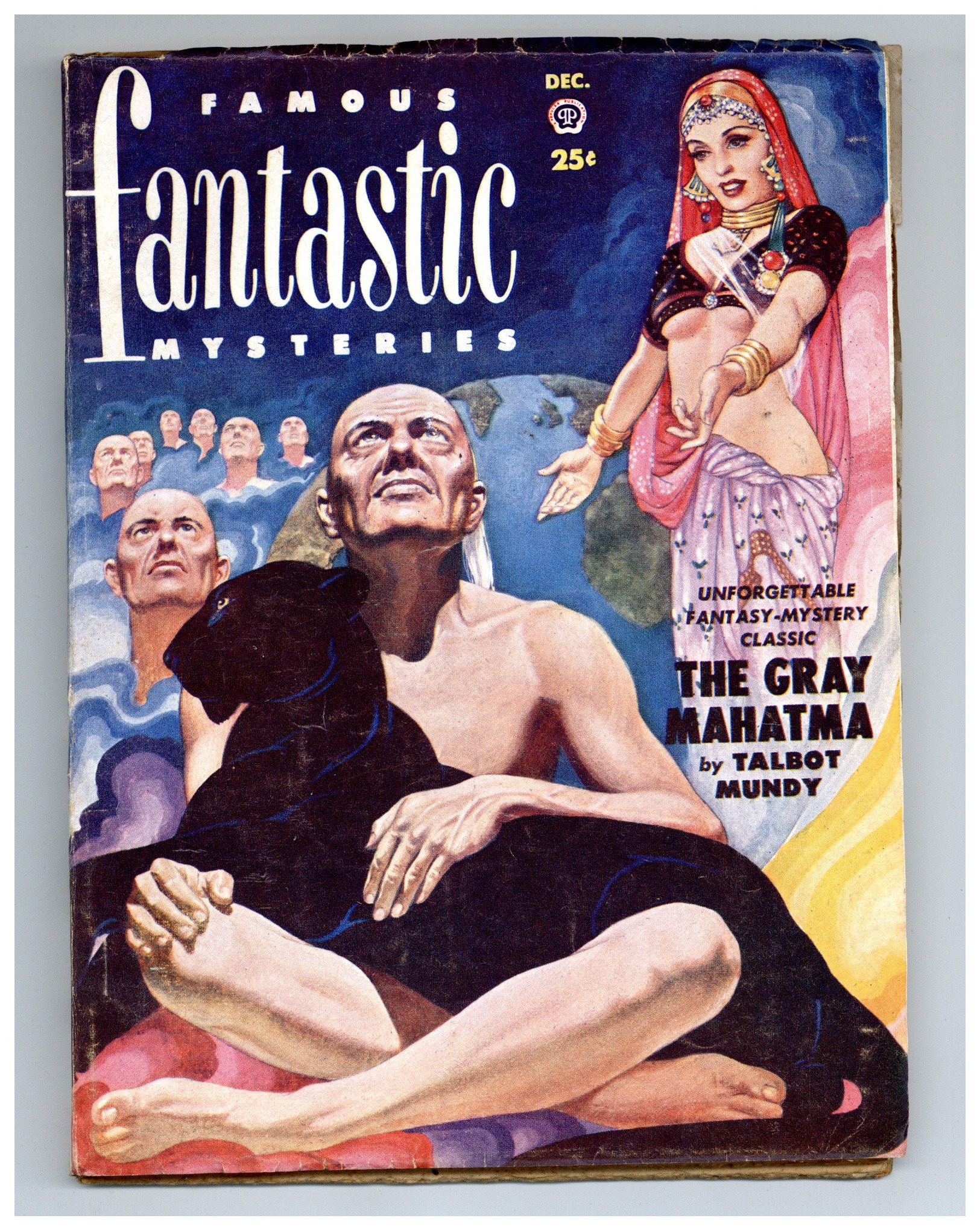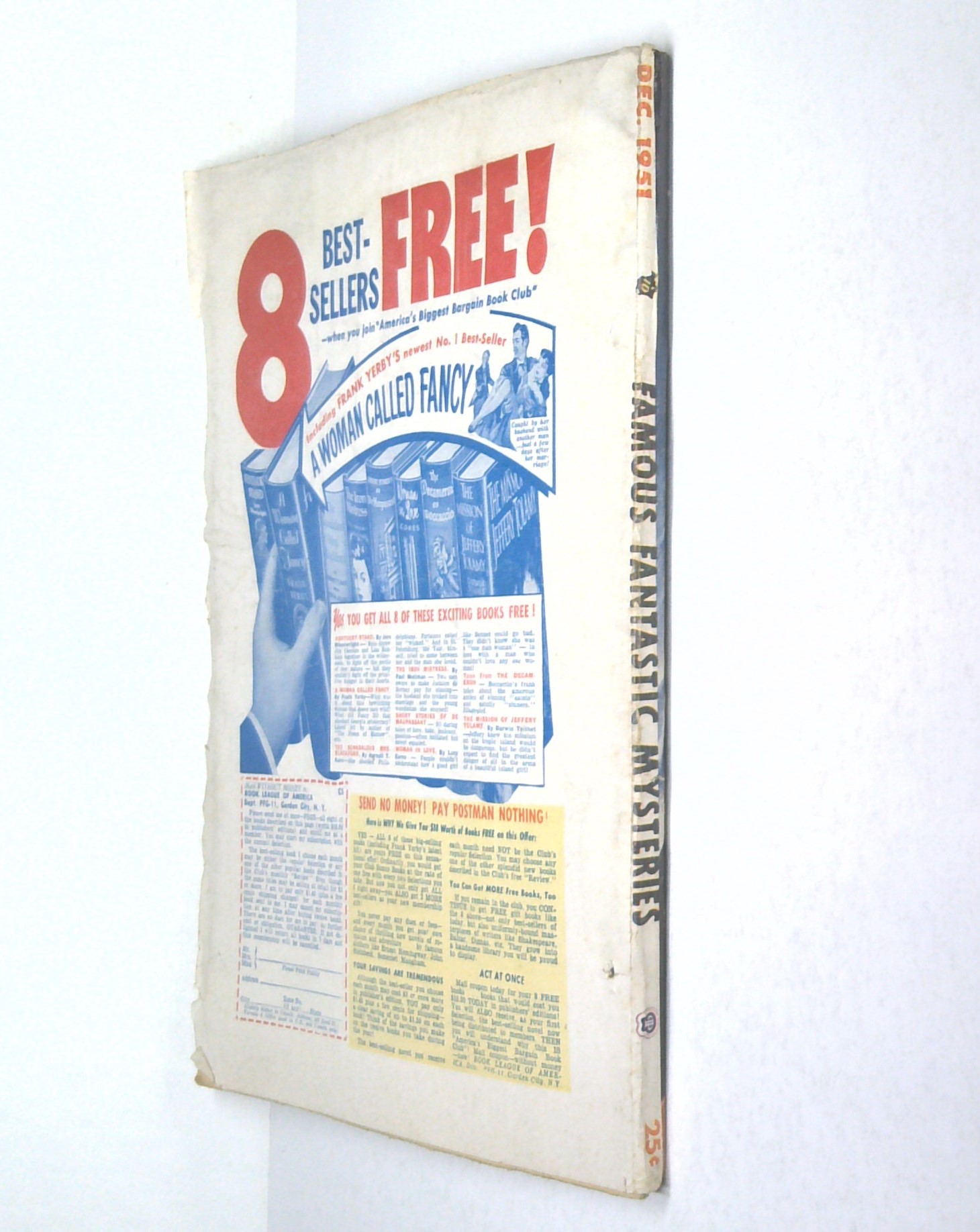 December 1951. Science fiction reprints: "The Gray Mahatma" by Talbot Mundy, "And He Built a Crooked House" by Robert Heinlein, "The Book" by Margaret Irwin, "Pickman's Model" by H.P. Lovecraft, and "He Didn't Want Soup" by Paul Ernst. Illustrations by Virgil Finlay, Lawrence Stevens, Hannes Bok, and Gene Fawcette. Lawrence cover. 6.75-in. x 9-in.; black and white; 114 newsprint pages. Published by Popular Publications Cover price $0.25.