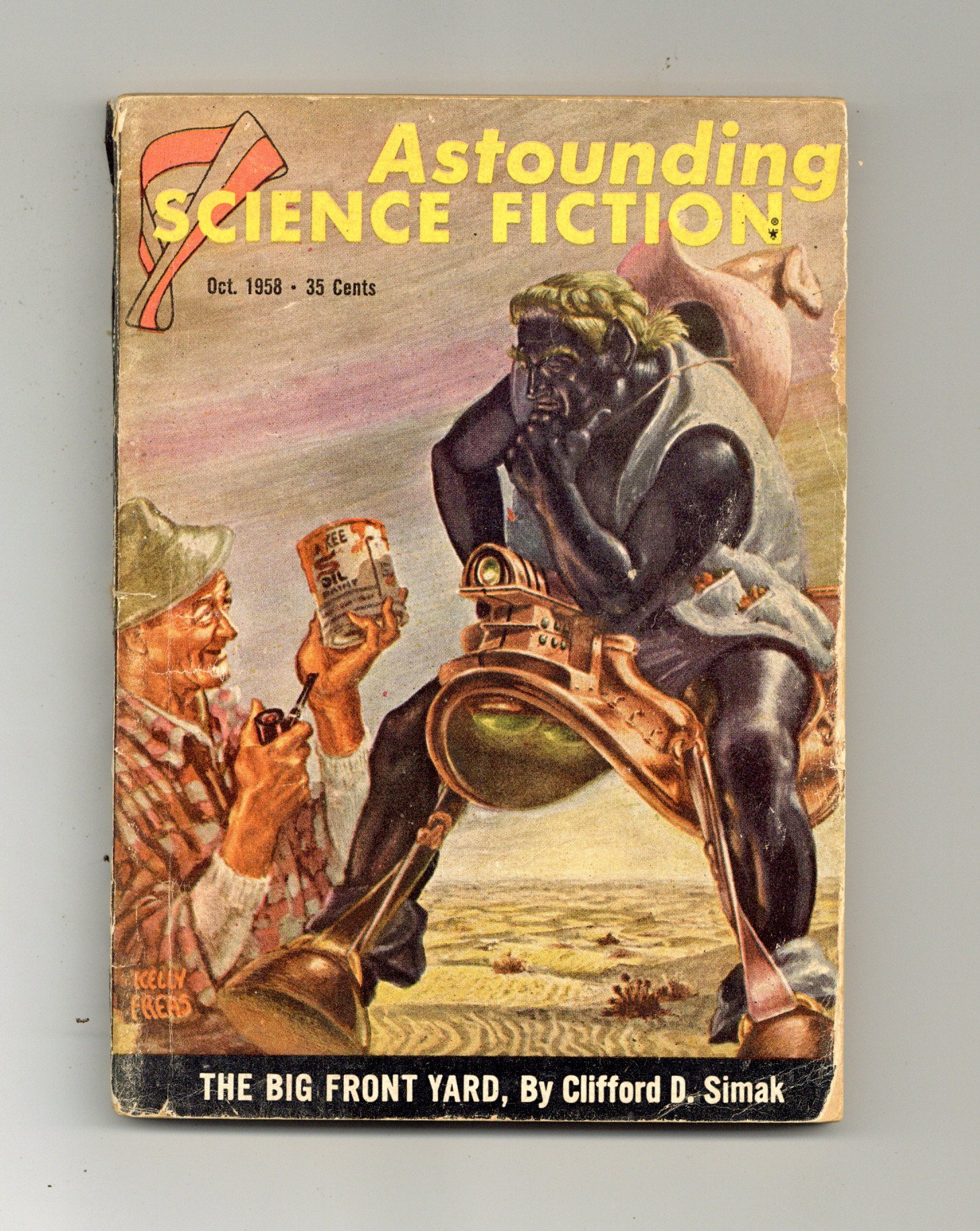 October 1958 - Volume 62, Issue 2 - 1st printing. Science fiction stories by Clifford D. Simak, Paul Ash, Randall Garrett, Rog Phillips, and Jay Williams. Illustrations by Freas, Schoenherr, Veigh, , and van Dongen. Article on divining rods. Short review of "The Return of Conan" by Bjorn Nyberg (Gnome Press). Cover by Freas. Softcover, 5.5-in. x 7.75-in.; 162 newsprint pages, B&W. Cover price $0.35.