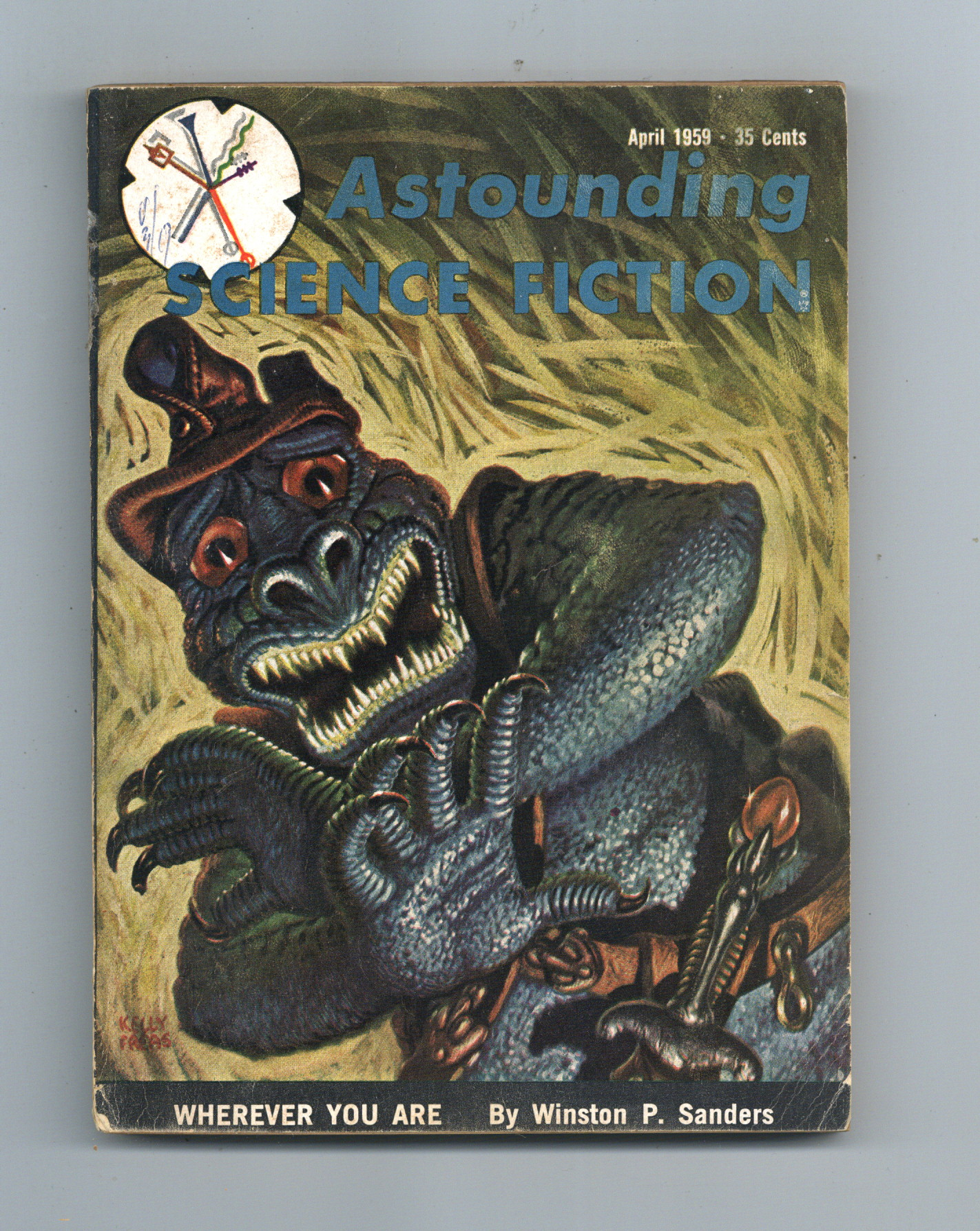 April 1959 - Volume 63, Issue 2 - 1st printing. Science fiction stories by Murray Leinster ("The Pirates of Ersatz" conclusion), Winston P. Sanders, Eric Frank Russell, H.C. Elliott, Christopher Anvil, and Gordon R. Dickson. Illustrations by Freas, Martinez, Schoenherr, and Summers. Cover by Freas. Softcover, 5.5-in. x 7.75-in.; 162 newsprint pages, B&W. Cover price $0.35.