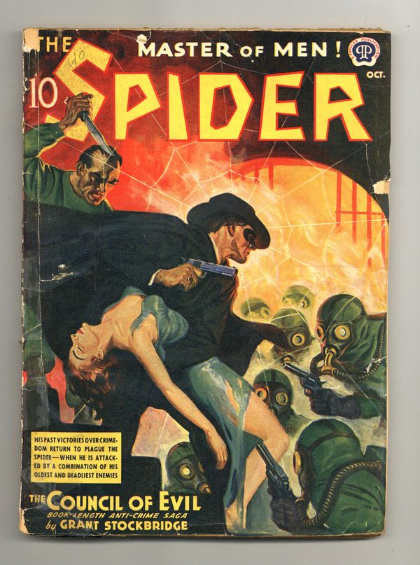 Oct 1940. Spider Story by Grant Stockbridge "The Council of Evil". Other story by Arthur Leo Zagat. Illustrations by J. Fleming Gould. 7" x 10", black and white; 112 newsprint pages. Cover price $0.10.