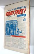 - Front cover detached 15%. Back cover detached 15%. Water damage: Moderate. Staple rust: Slight.