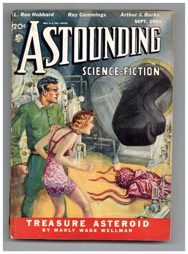 Volume 22, Issue 1 - September, 1938. Cover by C. R. Thomson. L. Ron Hubbard ("The Tramp" part 1 of 3). Trimmed pulp, 6.5" x 9.5", 164 pages, B&W. Cover price $0.20.