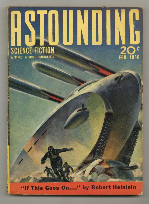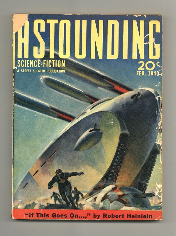 Starts Dec 8 February, 1940. Volume 24, Issue 6. Cover by Hubert Rogers. Robert Heinlein ("If This Goes On -" part 1 of 2) Trimmed pulp, 6.5-in. x 9.5-in.; black and white; 160 newsprint pages. Cover price $0.20.