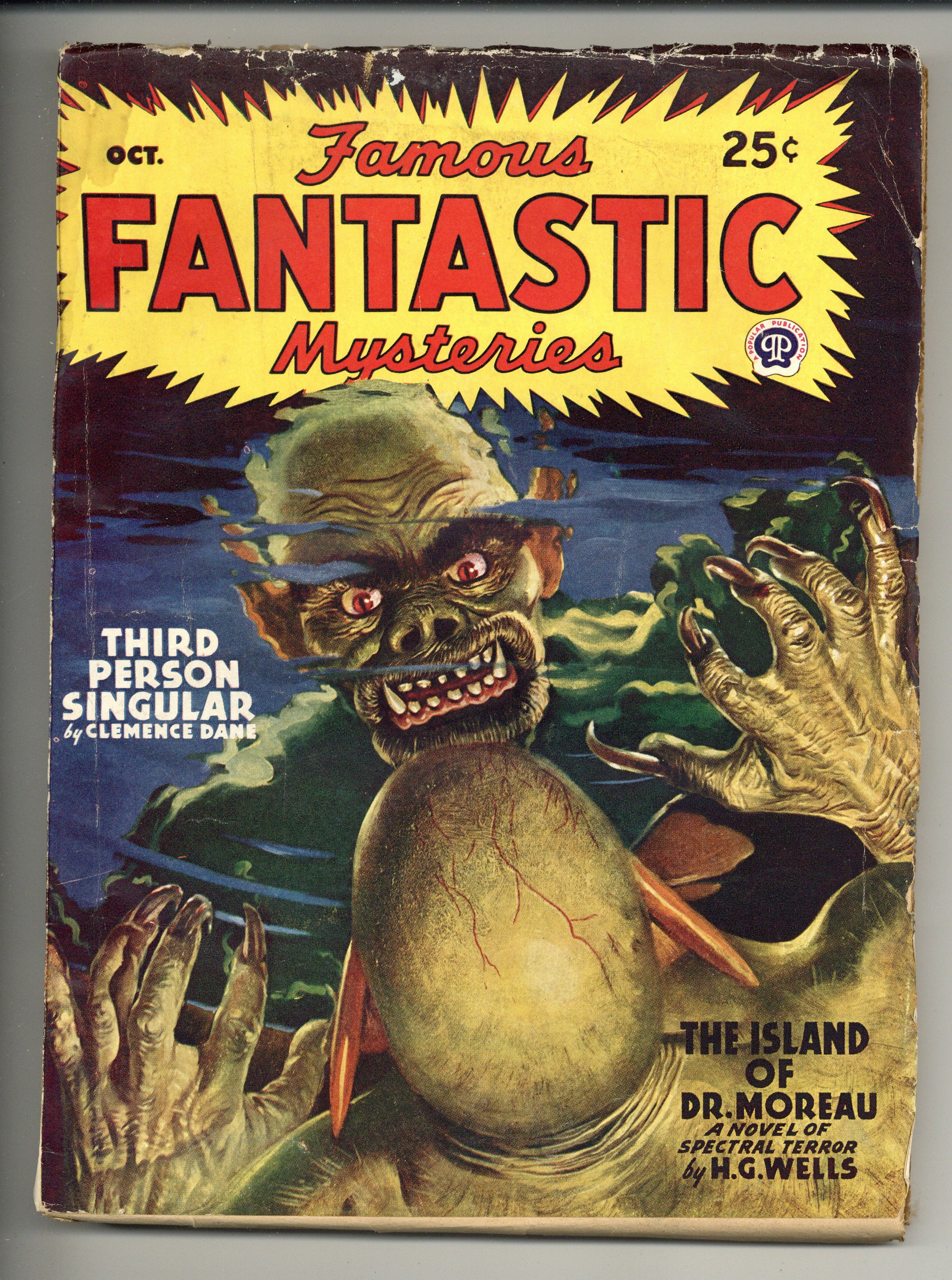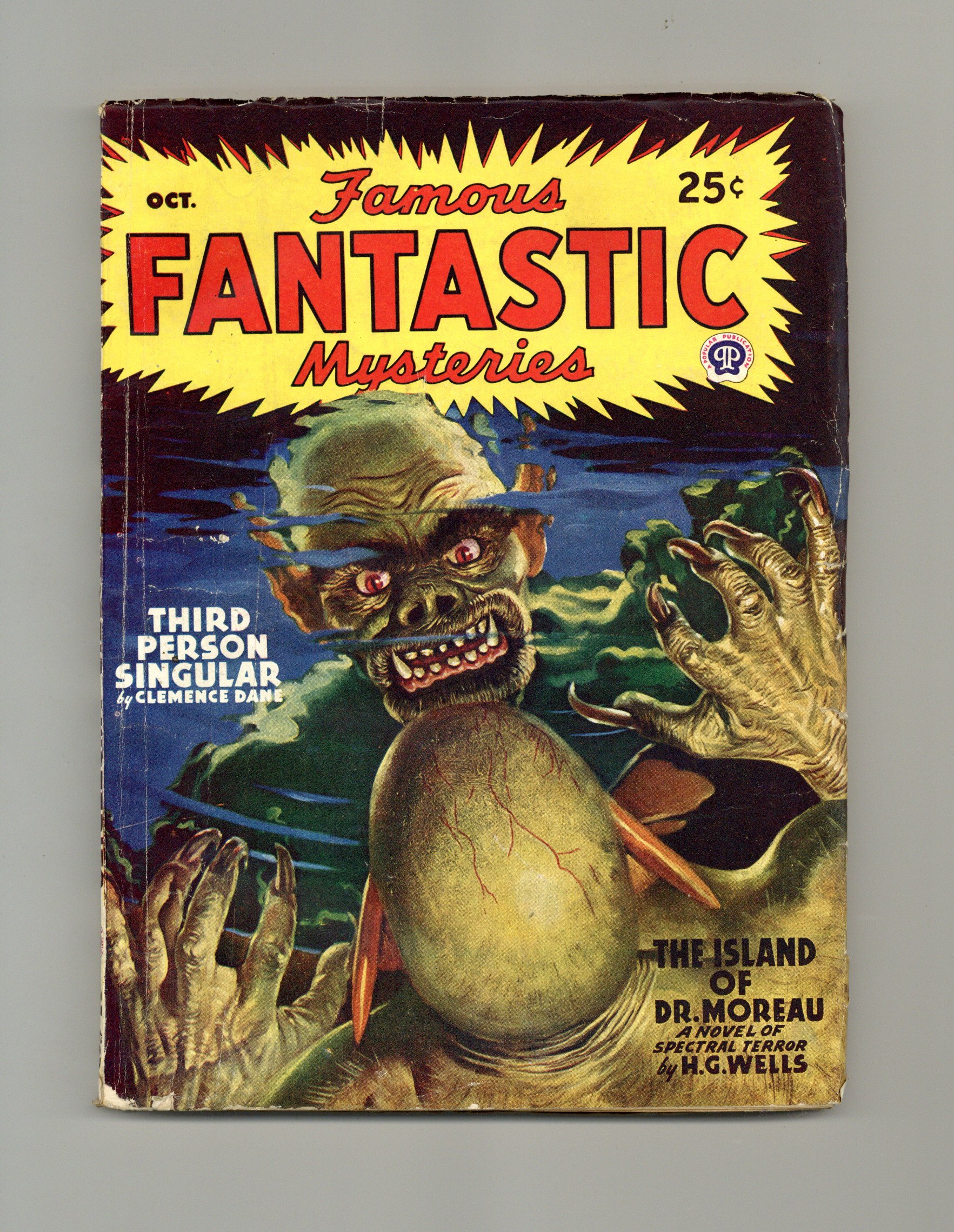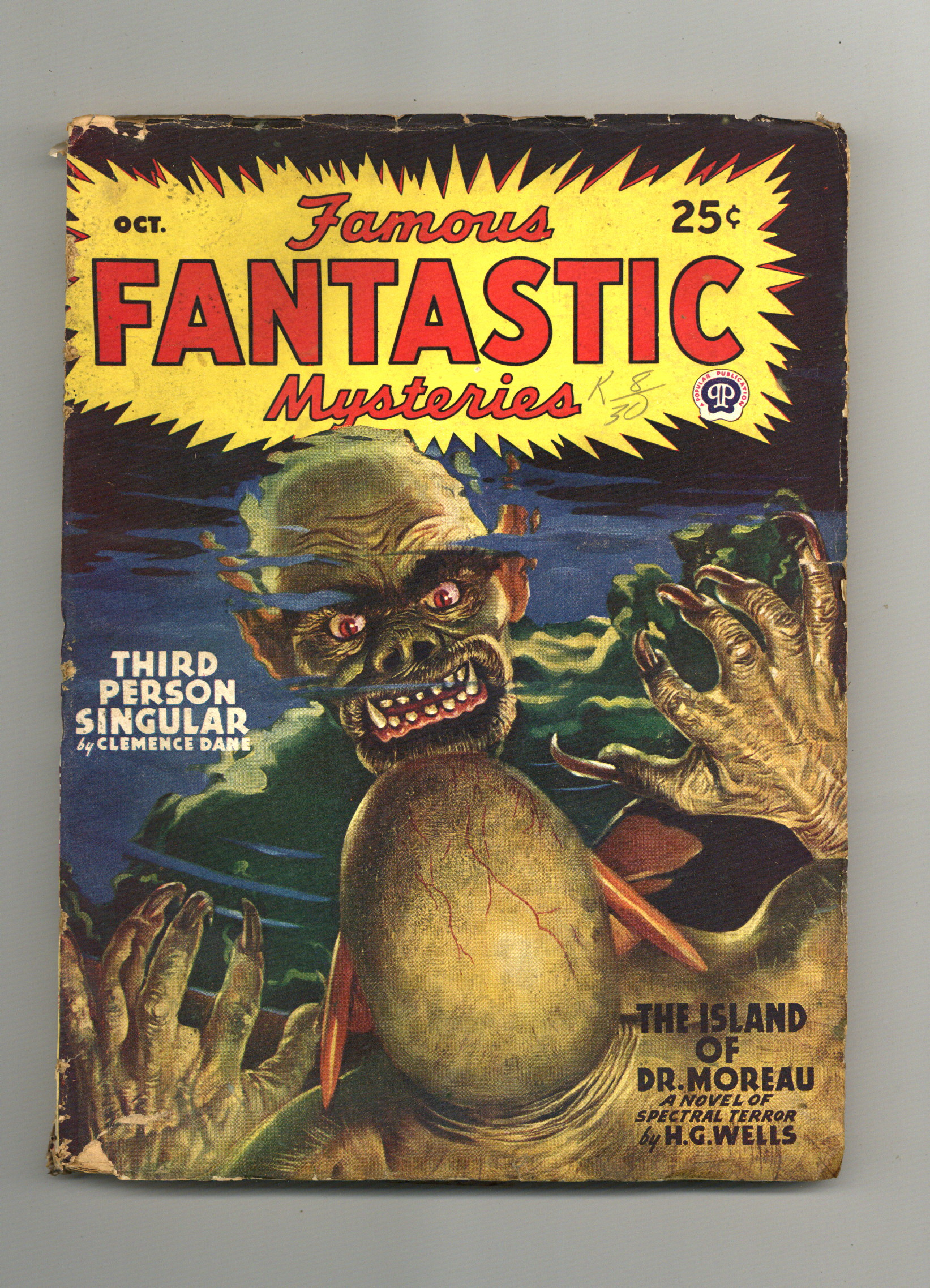 October 1946. Cover and interior illustrations by Lawrence and Finlay. "The Island of Dr. Moreau" by H.G. Wells, "Third Person Singular" by Clemence Dane, "Daemon" by C. L. Moore, "The Burial of the Rats" by Bram Stoker. 7-in. x 9 1/2-in.; 130 Pages, B&W. Published by Popular Publications Cover price $0.25.