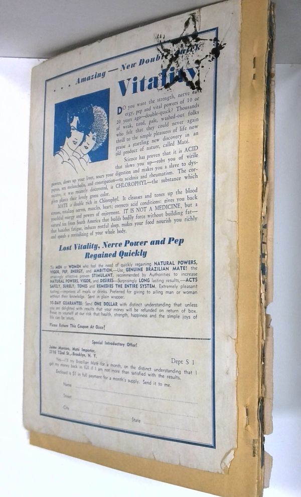 - Front cover detached 10%. Back cover detached 60%. Water damage: Moderate. Staple rust: Moderate.