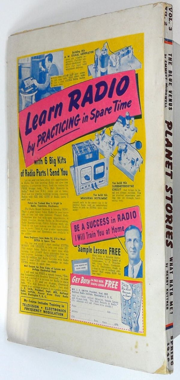 Cover by H.L. Parkhurst. Science fiction novels "Engines of the God" by Gardner. F. Fox and "The Blue Venus" by Emmet McDowell. Novelette "What Hath Me?" by Henry Kuttner. Shorts "Survival" by Basil Wells, "Defense Mech" by Ray Bradbury, "Electron Eat Electron" by Noel Loomis, and "Crisis on Titan" by James R. Adams. Illustrations by H. W. Kiemle, Joseph Doolin, Hollingsworth, Chester Martin, Petrizzo, Guy Gifford, and C. A. Murphy. 7-in. x 10-in.; 128 Pages, B&W. Cover price $0.20.