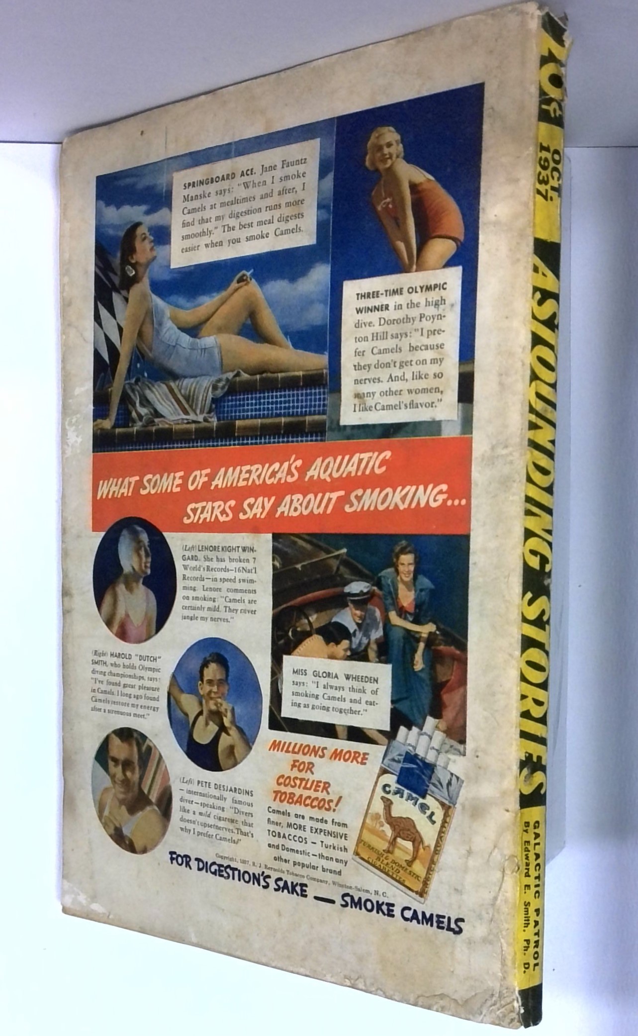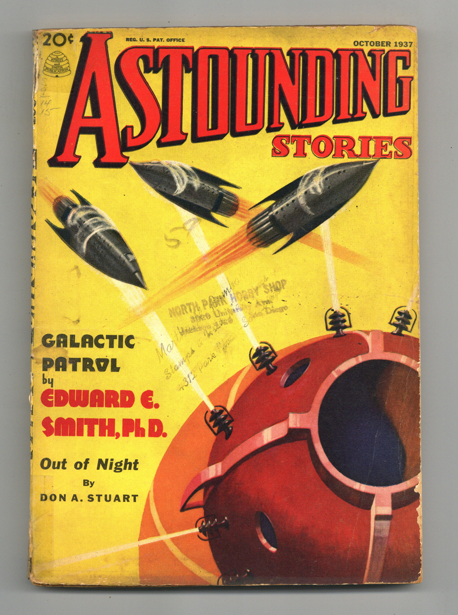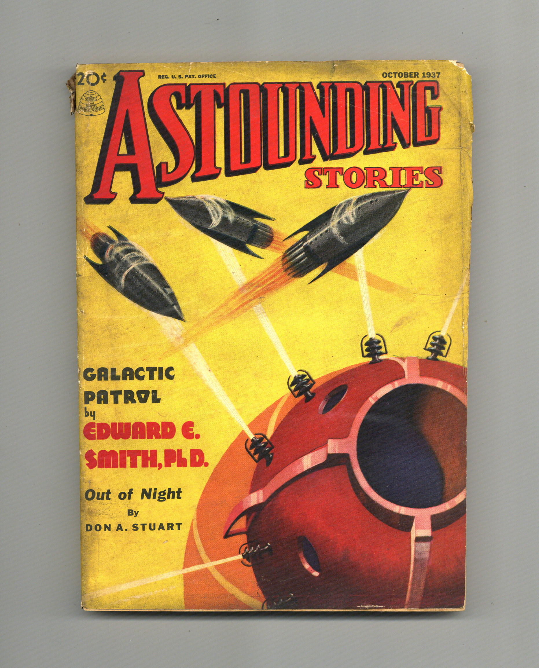 October 1937. Volume 20, Issue 2. Cover by Brown. Science fiction stories including " Galactic Patrol" by Edward E. Smith, and Don A. Stuart Trimmed pulp, 6.5-in. x 9.5-in.; black and white; 160 newsprint pages. Cover price $0.20.
