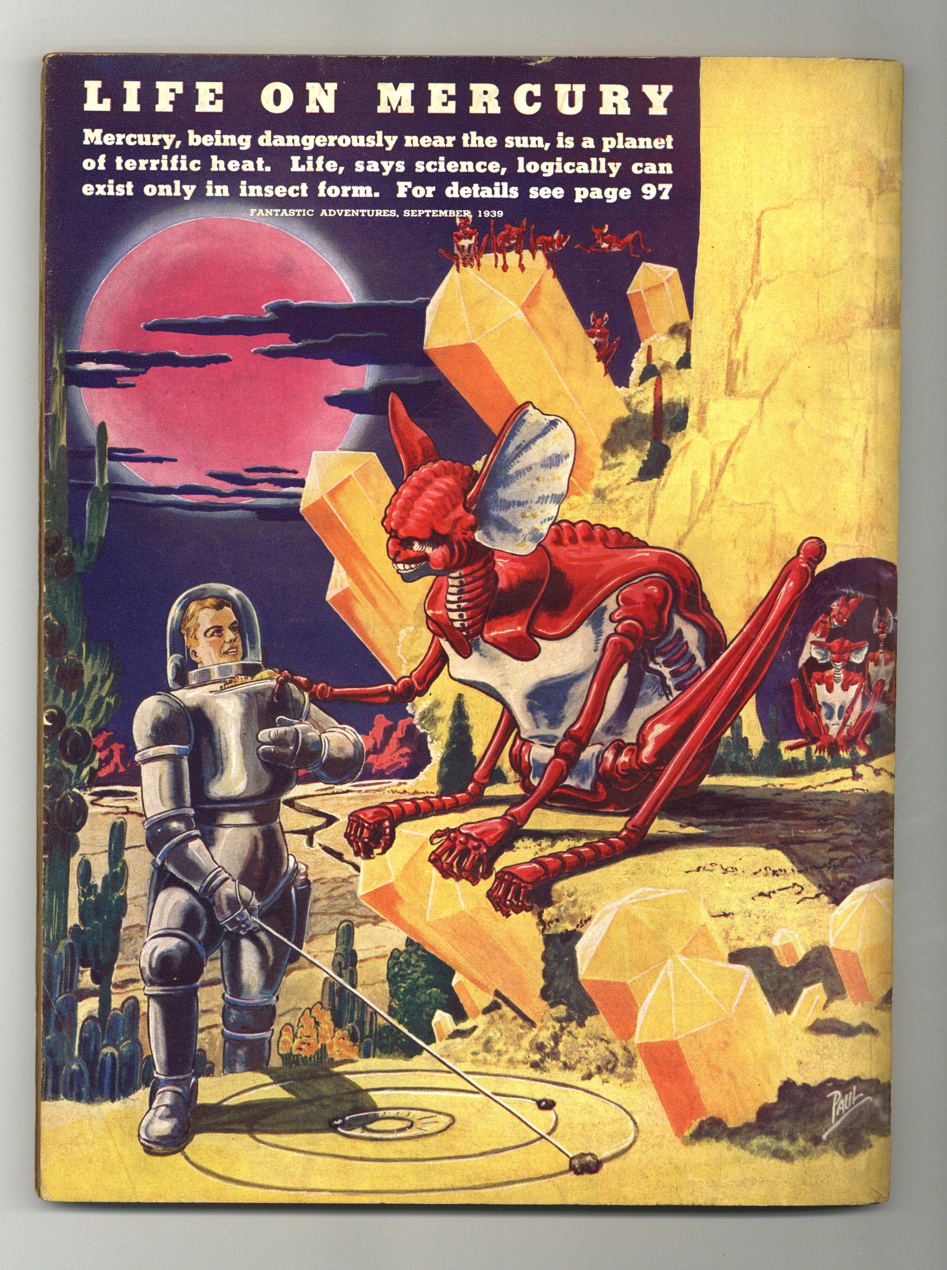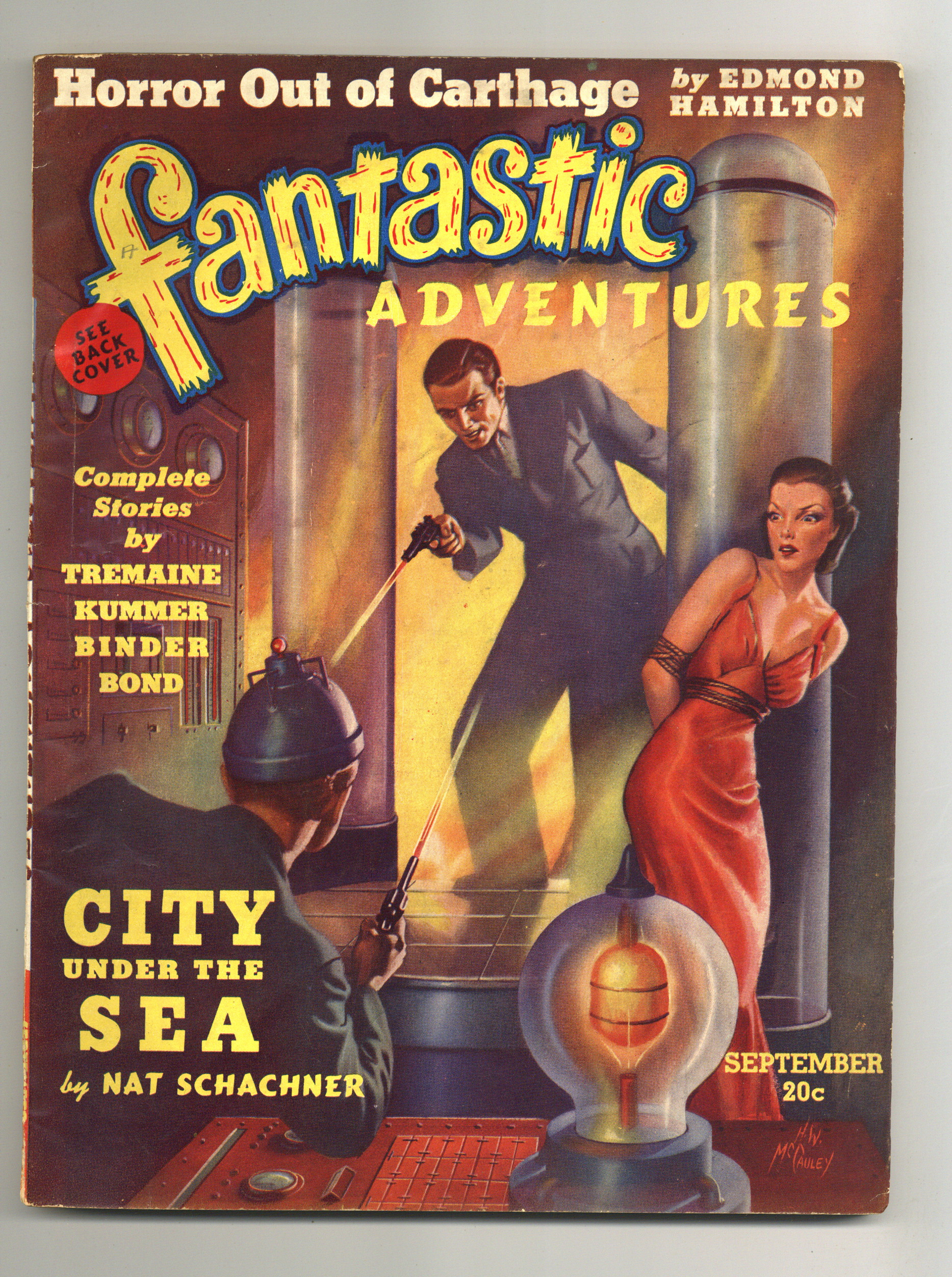 Published Sep 1939 by Ziff Davis.$150.00Volume 1, Issue 3 - September 1939. Cover by Harold W. McCauley. Science Fiction and Fantasy adventure stories. This issue features "City Under the Sea" by Nat Schachner, and stories by Tremaine, Kummer, Binder, and Bond! 8.5" x 11.25", 100 pages, B&W Cover price $0.20.