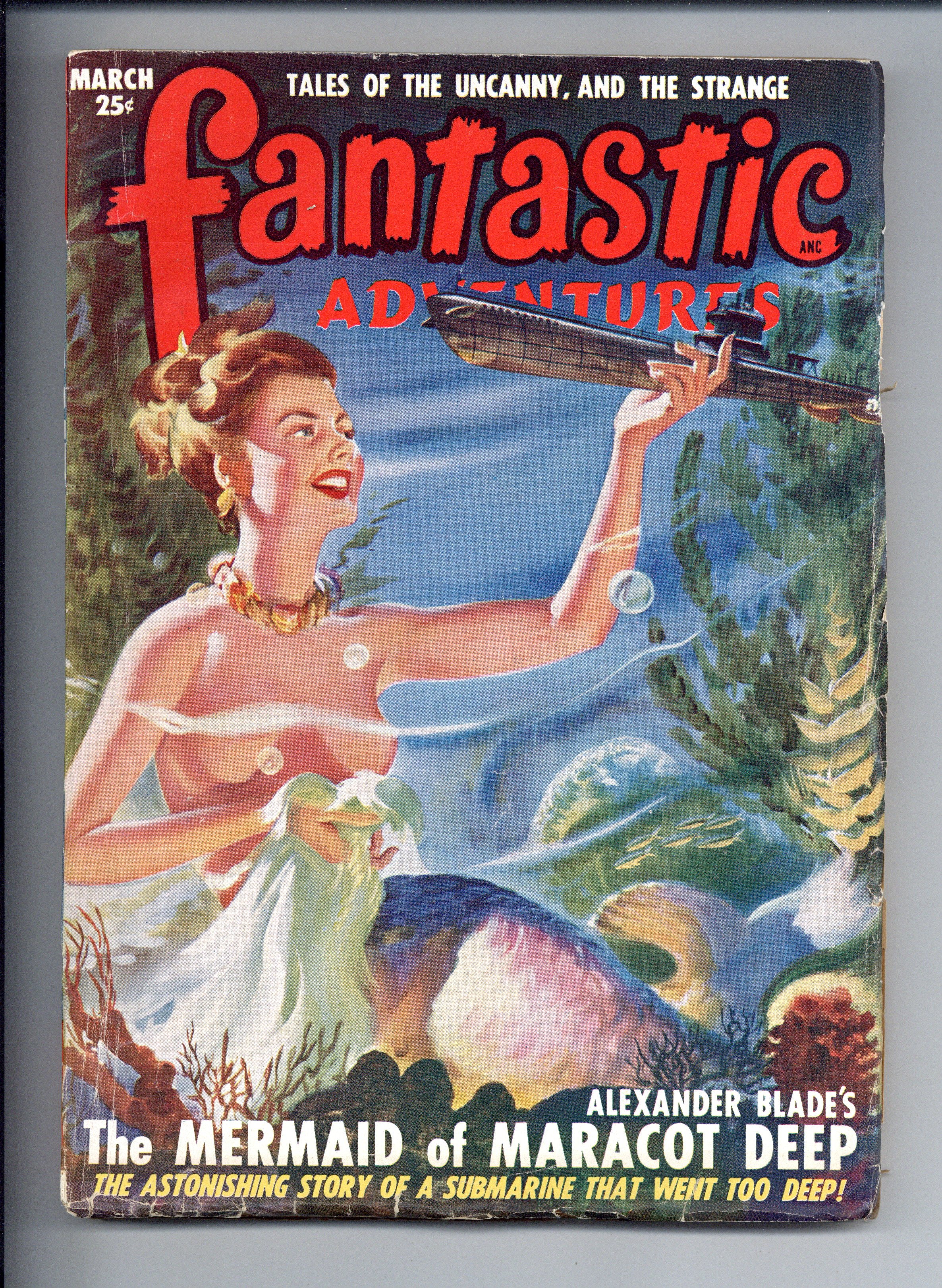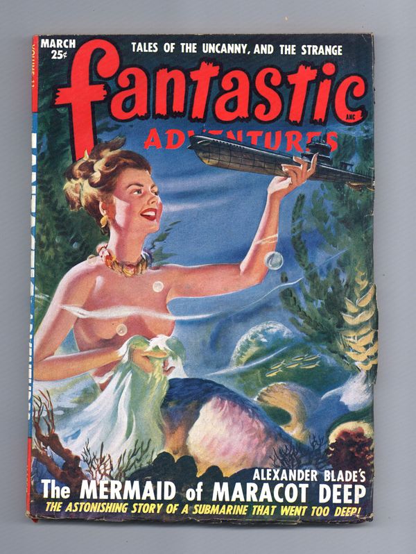 Volume 11, Issue 3 - March 1949. Cover by Arnold Kohn. Science Fiction and Adventures stories. This issue features "The Mermaid of Maracot Deep" by Alexander Blade. Softcover Pulp, 7-in x 10-in, 154 Pages, B&W. Cover price $0.25.