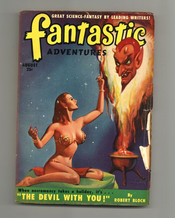 Volume 12, Issue 8 - August, 1950. Cover by Harold W. McCauley. Science Fiction and Adventures stories. This issue features "The Devil With You!" by Robert Bloch. Softcover Pulp, 7-in x 10-in, 164 Pages, B&W. Cover price $0.25.