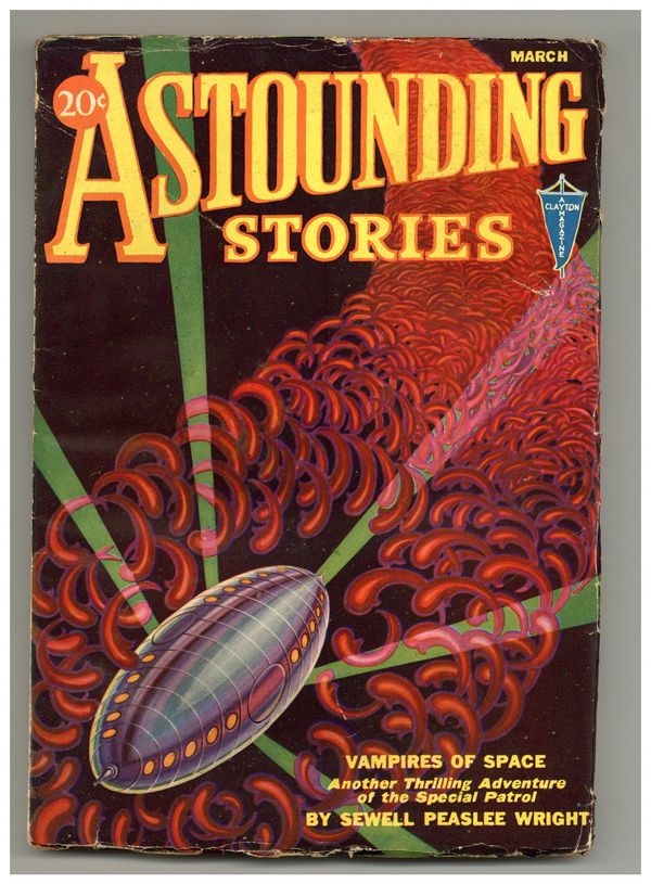 Volume 9, Issue 3 - March 1932. Science fiction and adventure stories. This issue features "The Vampires of Space" by Sewell Peaslee Wright. 144 pages, B&W Cover price $0.20.