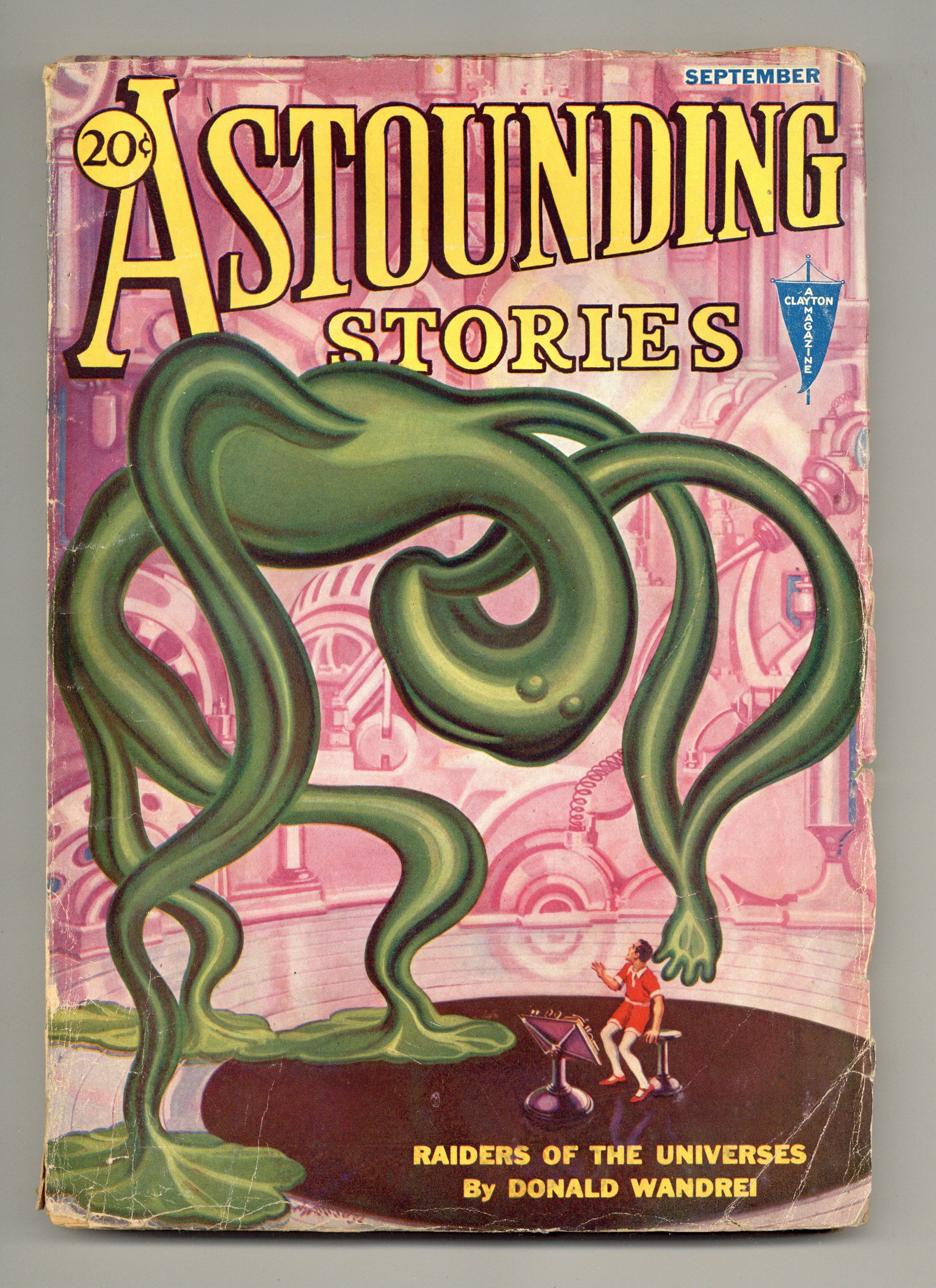 Volume 11, Issue 1 - September 1932. Science fiction and adventure stories. This issue features "Raiders of the Universes" by Donald Wandrei. 144 pages, B&W Cover price $0.20.