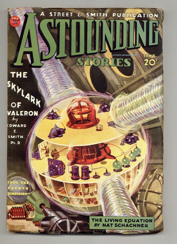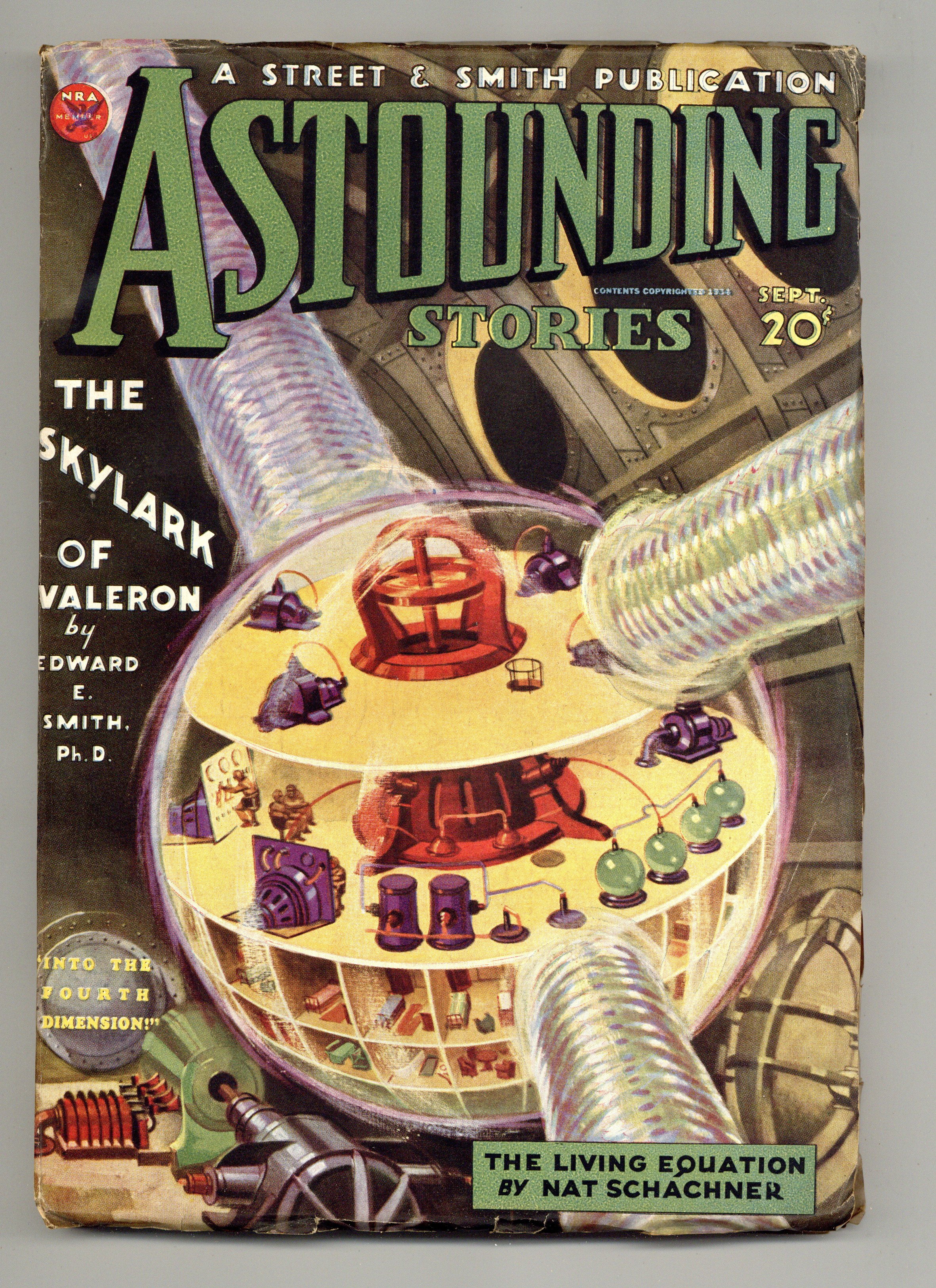 Volume 14, Issue 1 - September 1934. Science Fiction and Adventure stories. This issue features "The Skylark of Valeron" by Edward D. Smith, Ph.D, and "The Living Equation" by Nat Schachner. 144 pages, B&W Cover price $0.20.