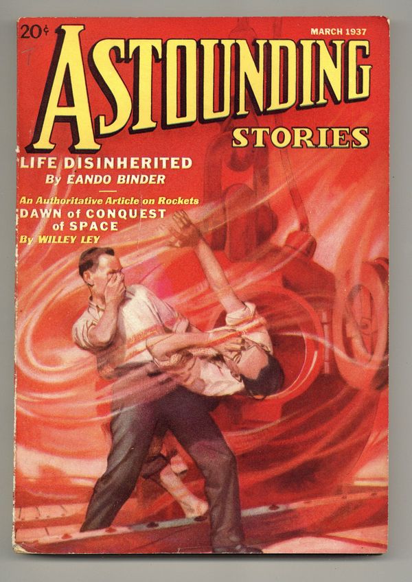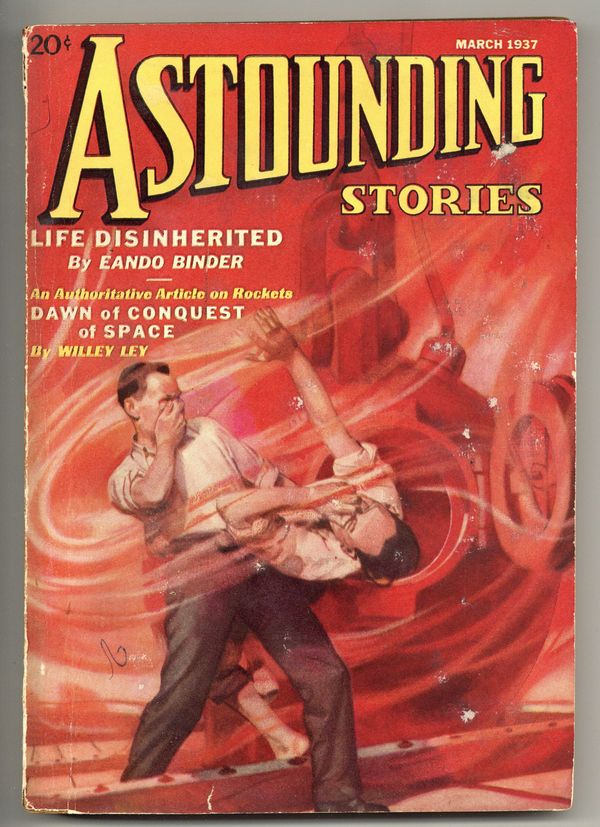 Volume 19, Issue 1 - March 1937. Science Fiction and Adventure stories. This issue features "Life Disinherited" by Eando Binder, and "Dawn of Conquest of Space" by Willey Ley, an authoritative article on rockets. 160 pages, B&W Cover price $0.20.