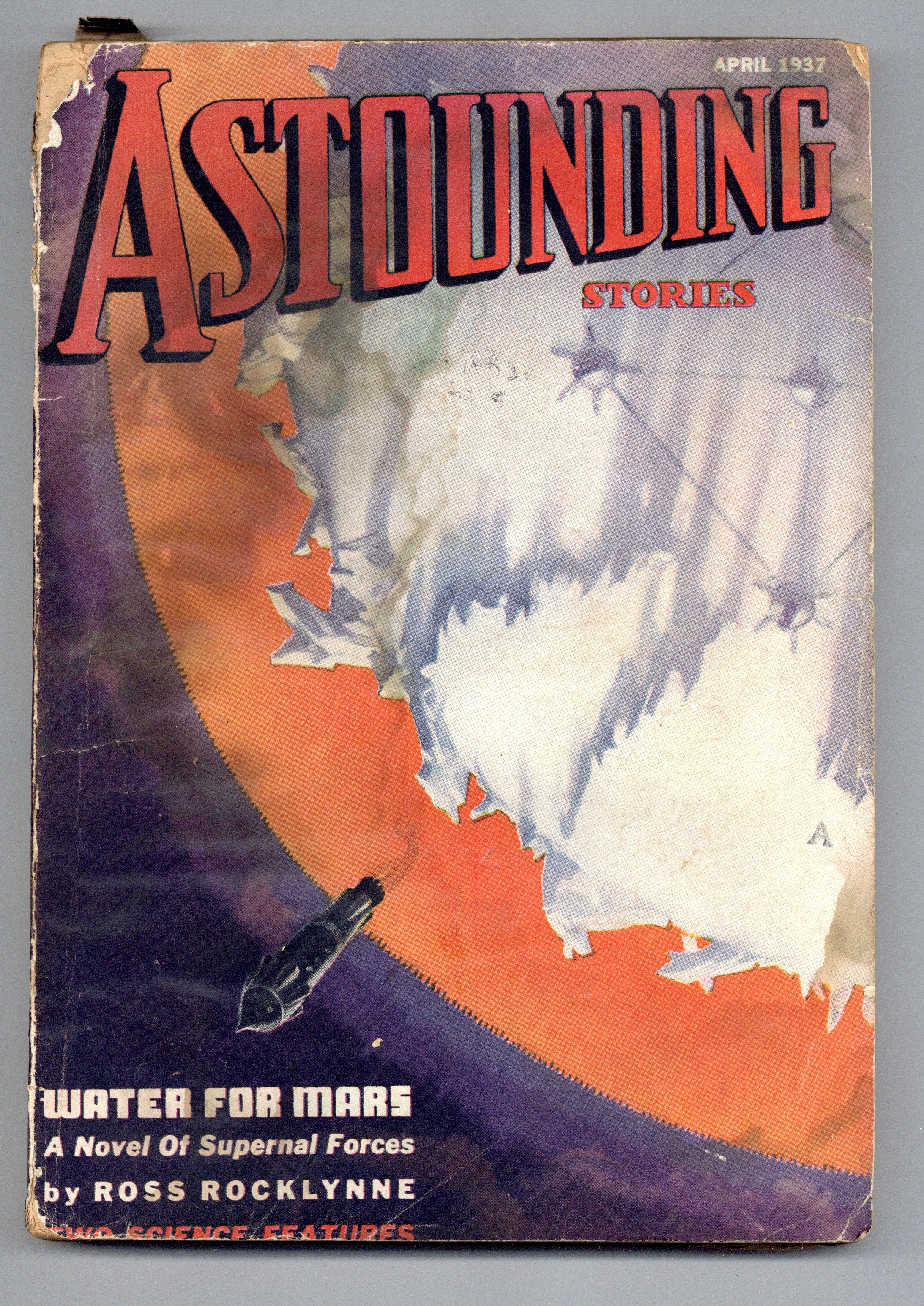 Volume 19, Issue 2 - April 1937. Science Fiction and Adventure stories. This issue features "Water for Mars" by Ross Rocklynne. 160 pages, B&W Cover price $0.20.