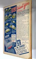 - Back cover detached 40%. Water damage: Moderate. Staple rust: Moderate.