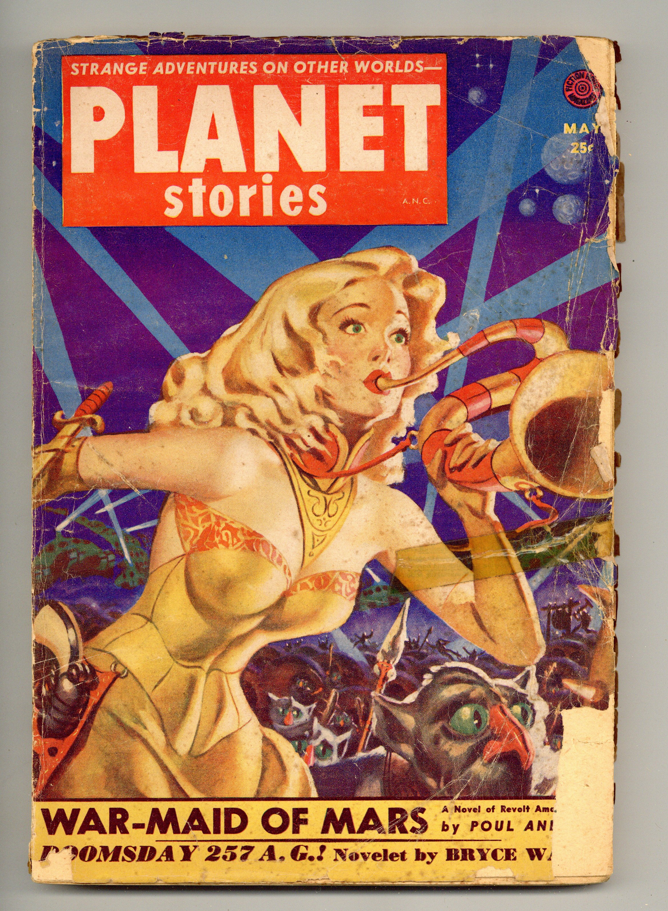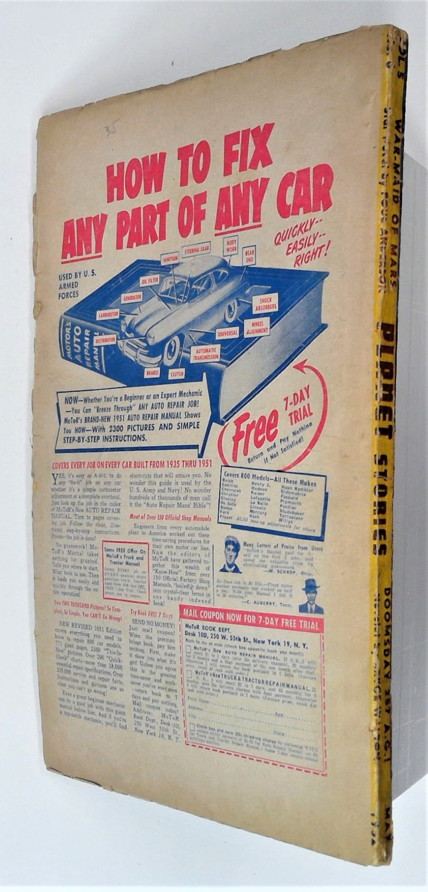 May 1952. Cover by Allen Anderson. "War-Maid of Mars" by Poul Anderson. Other stories by J. T. McIntosh, Bryce Walton, Robert Moore Williams, Peter Phillips, Lloyd Palmer, Bolling Branham, and John McGreevey. Illustrations by Herman Vestal, Kelly Freas. 7-in. x 9.75-in.; black and white; 116 pages. Cover price $0.25.