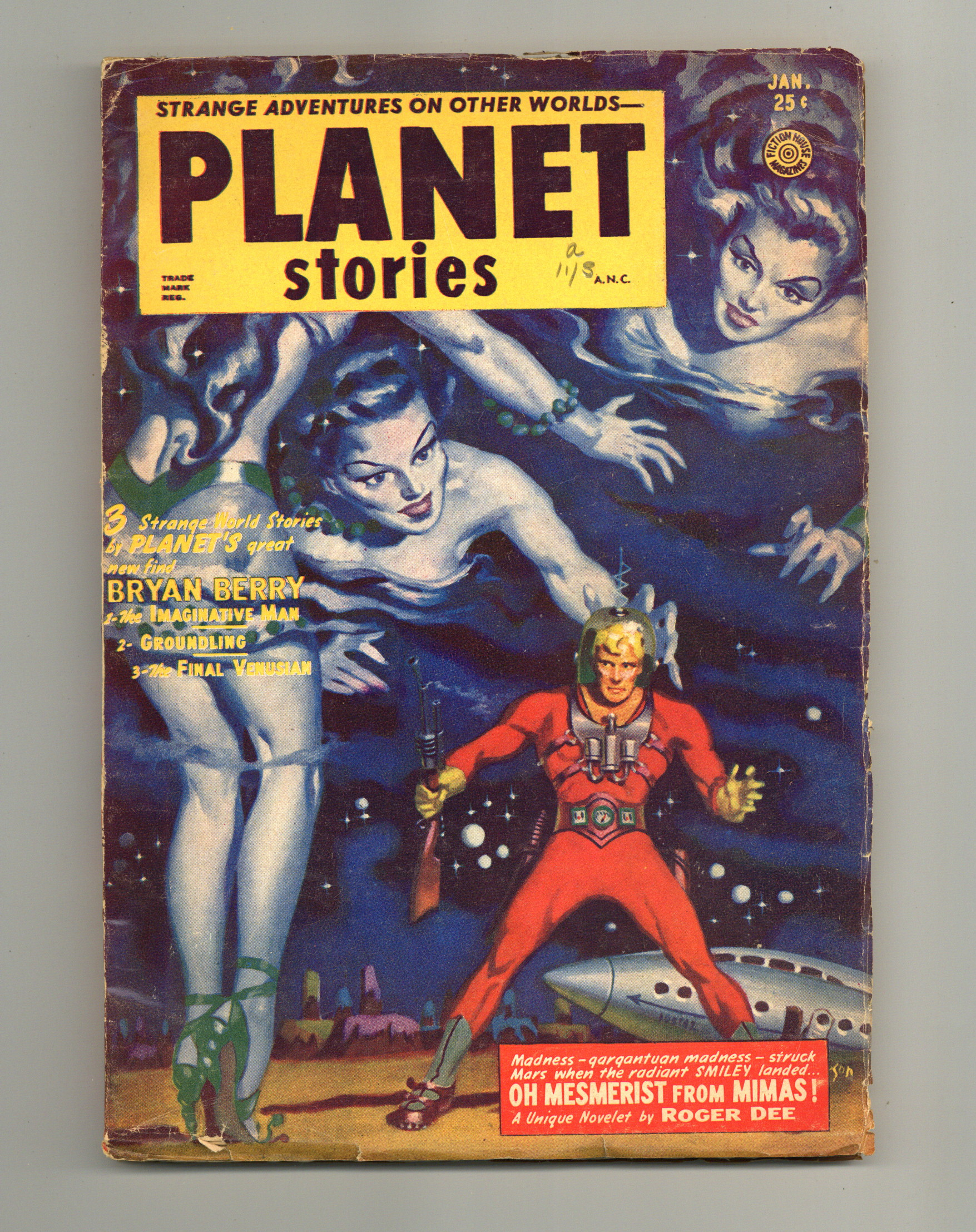 Volume 5, Issue 10 - January, 1953. Cover by Allen Anderson. "Oh Mesmerist from Mimas!" by Roger Dee. Other stories by Erick Frank Russell, John W. Jakes, Stanley Whiteside, and Bryan Berry. Illustrations by Herman Vestal, Wally Wood. 6.75" x 9.75", 116 pages, B&W. Cover price $0.25.