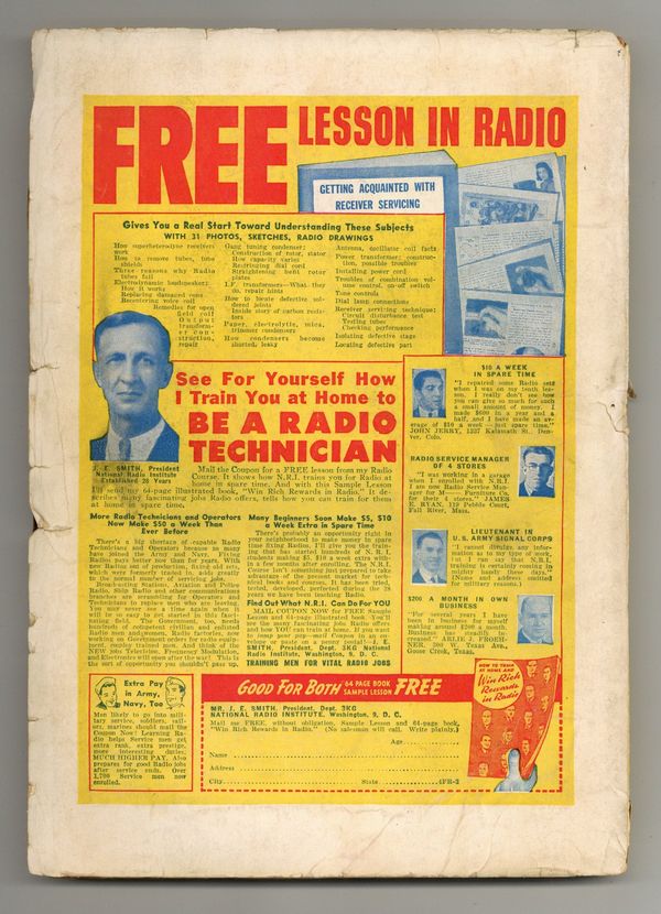Published Dec 1943 by Fiction House.$50.00- Full length spine split with back cover detached.