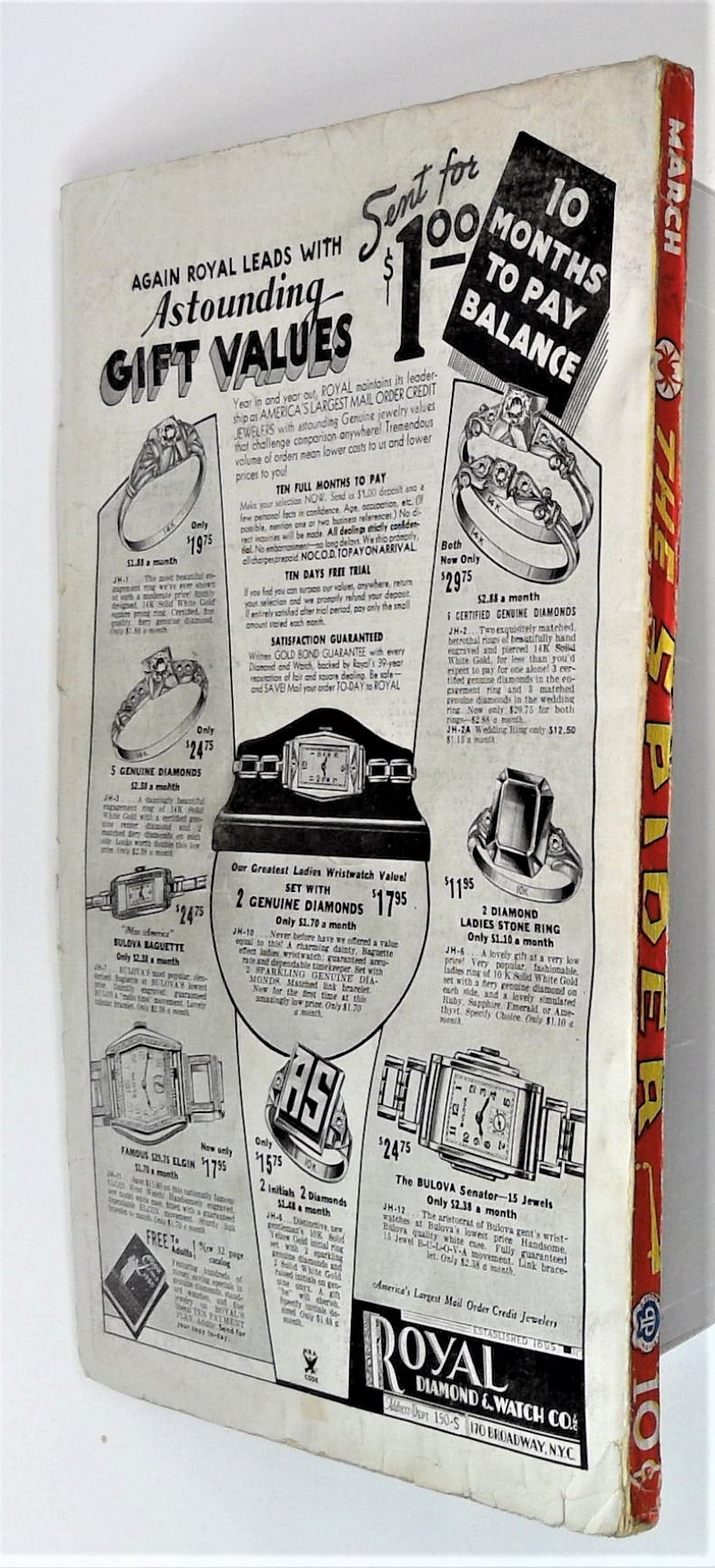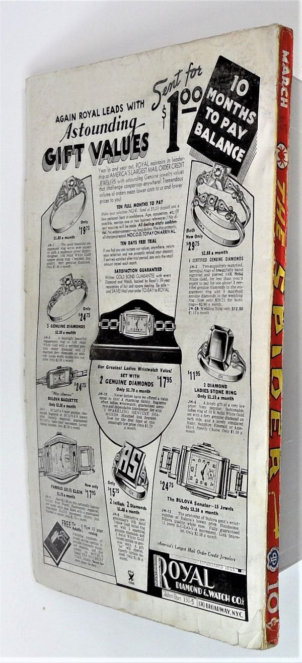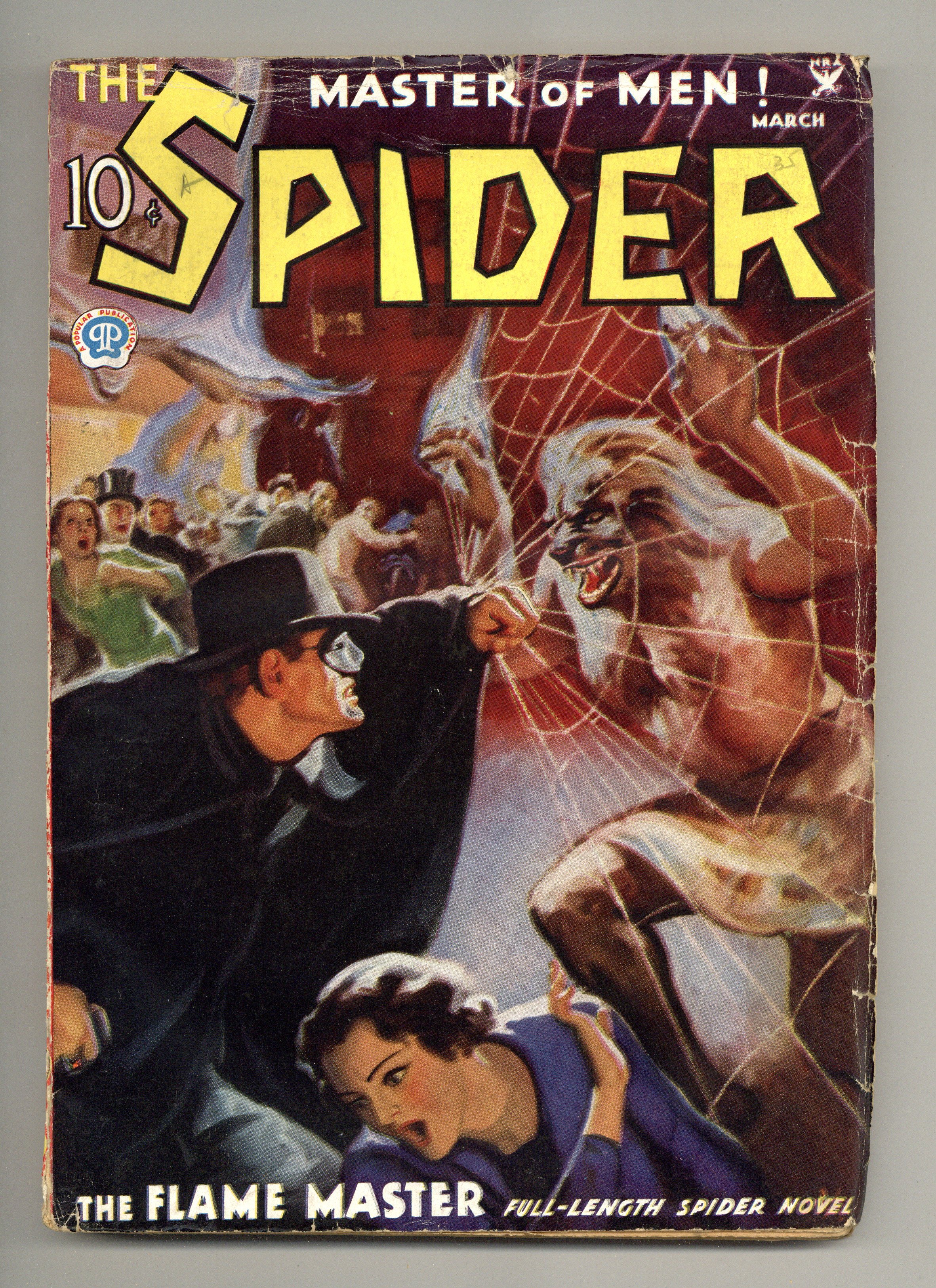 March 1935. Cover by John Howitt. Spider Story by Grant Stockbridge "The Flame Master". Other stories by Arthur Wyatt Blassingame and Emile C. Tepperman. Anti-crime article by Inspector Leslie T. White. Illustrations by J. Fleming Gould.7" x 10", black and white; 128 newsprint pages. Cover price $0.10.
