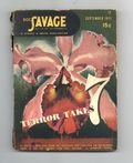 September 1945. "Terror Takes" by "Kenneth Robeson"; "Dog Friday" by John Scott Douglas; and "Night Race" by Bruno Fischer. Digest size, 5-5/8" x 7-3/4"; black and white; 130 pages. Cover price $0.15.