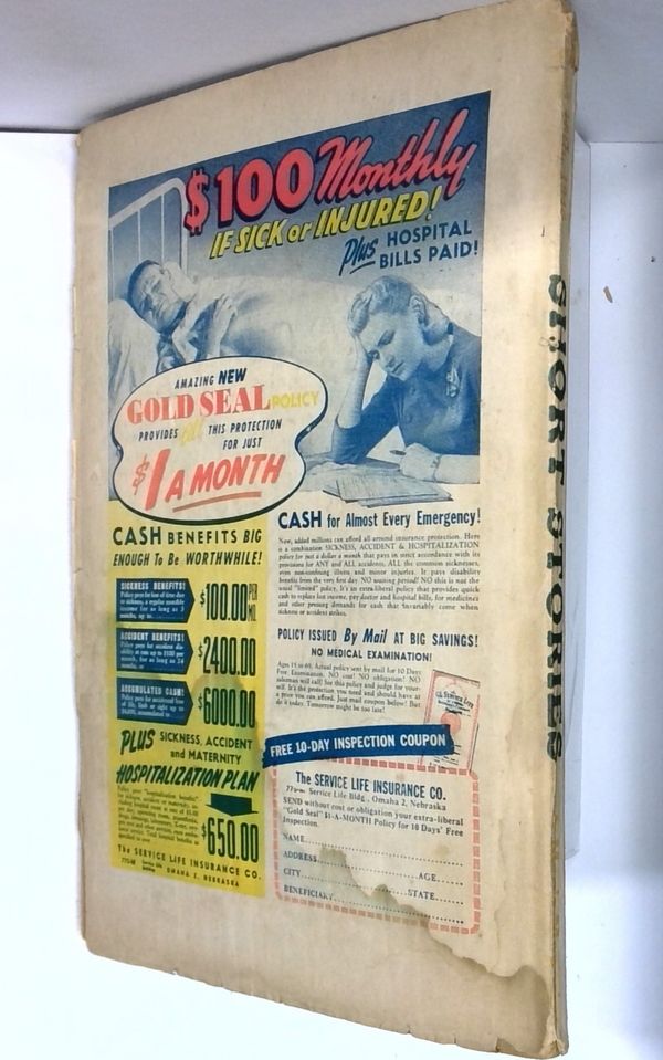 - Front cover detached 5%. Back cover detached 5%. Water damage: Slight. Staple rust: Slight.