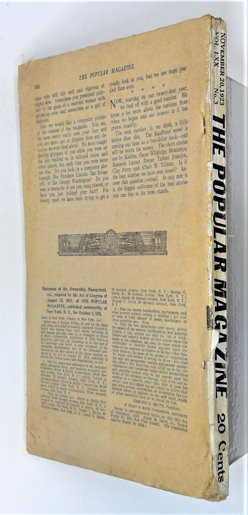 Published Nov 1923 by Street & Smith.$17.00- Paper: Cream to off white