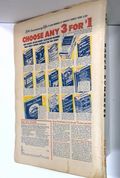 - Front cover detached 10%. Water damage: Moderate. Staple rust: Slight.
