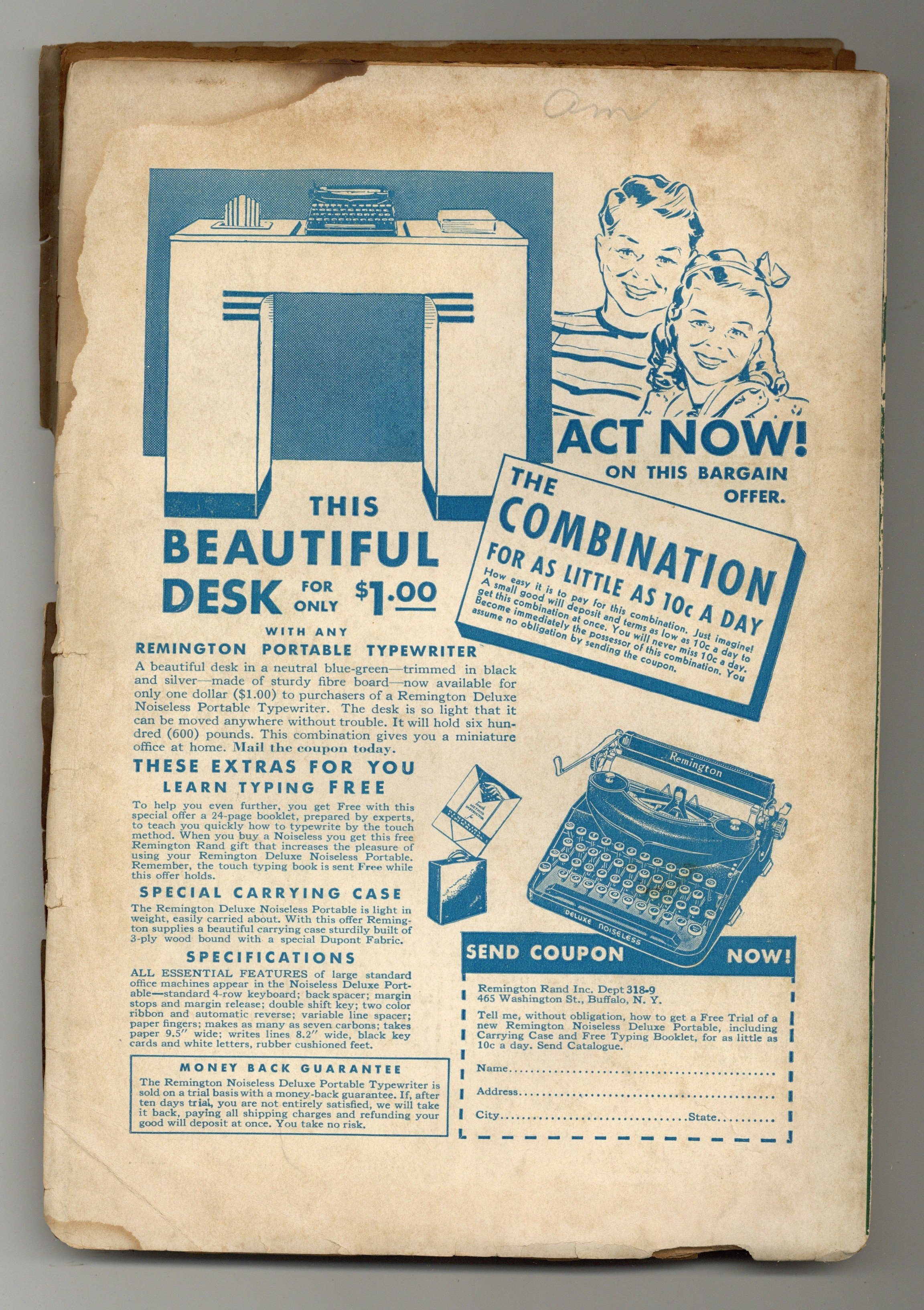 - Back cover detached 5%. Water damage: Moderate. Staple rust: Extensive.