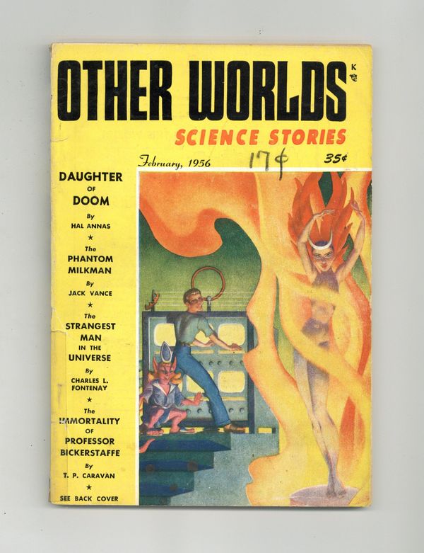 February, 1956. Stories by Hal Annas, Jack Vance, Charles L. Fontenay, T.P. Caravan, and more. Softcover Pulp, 6 1/2-in x 9-in, 100 Pages, B&W. Cover price $0.35.